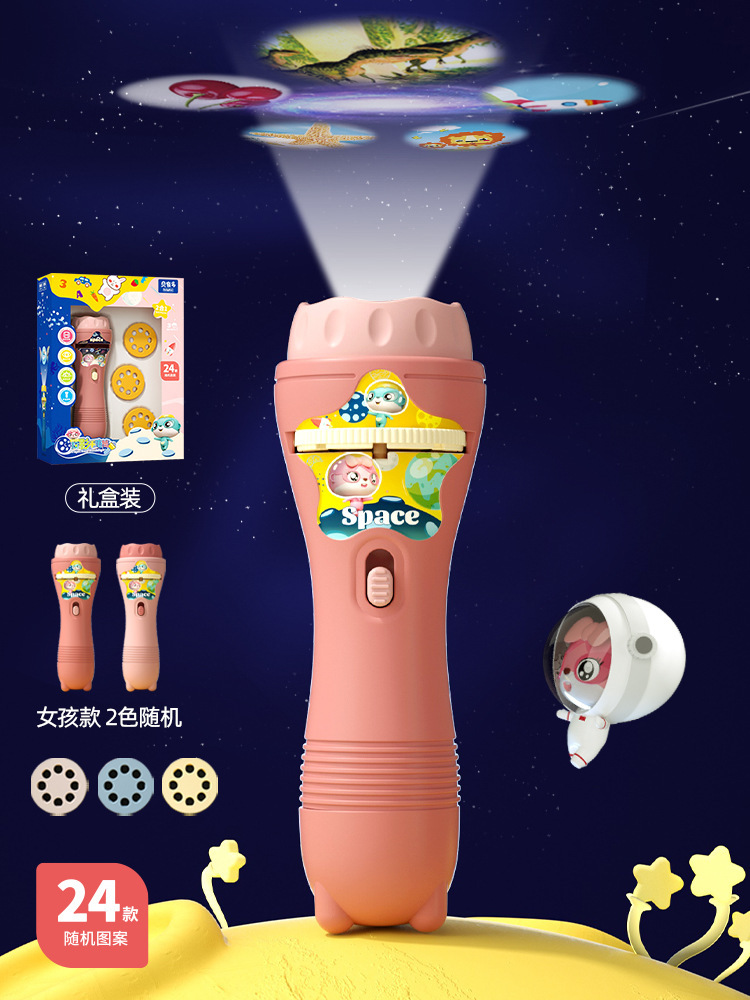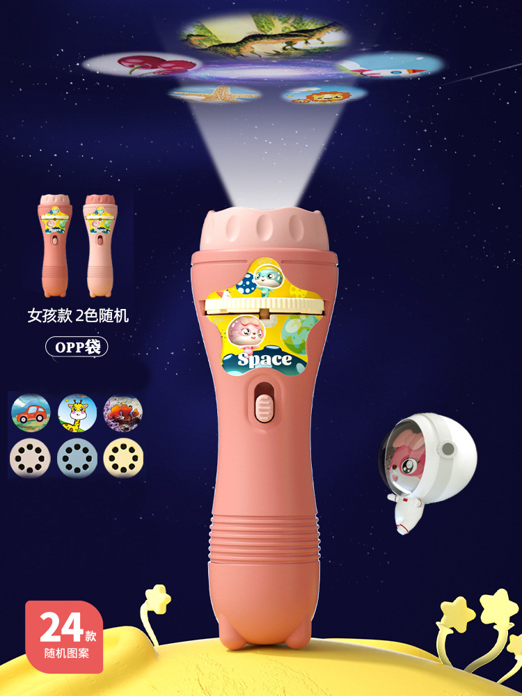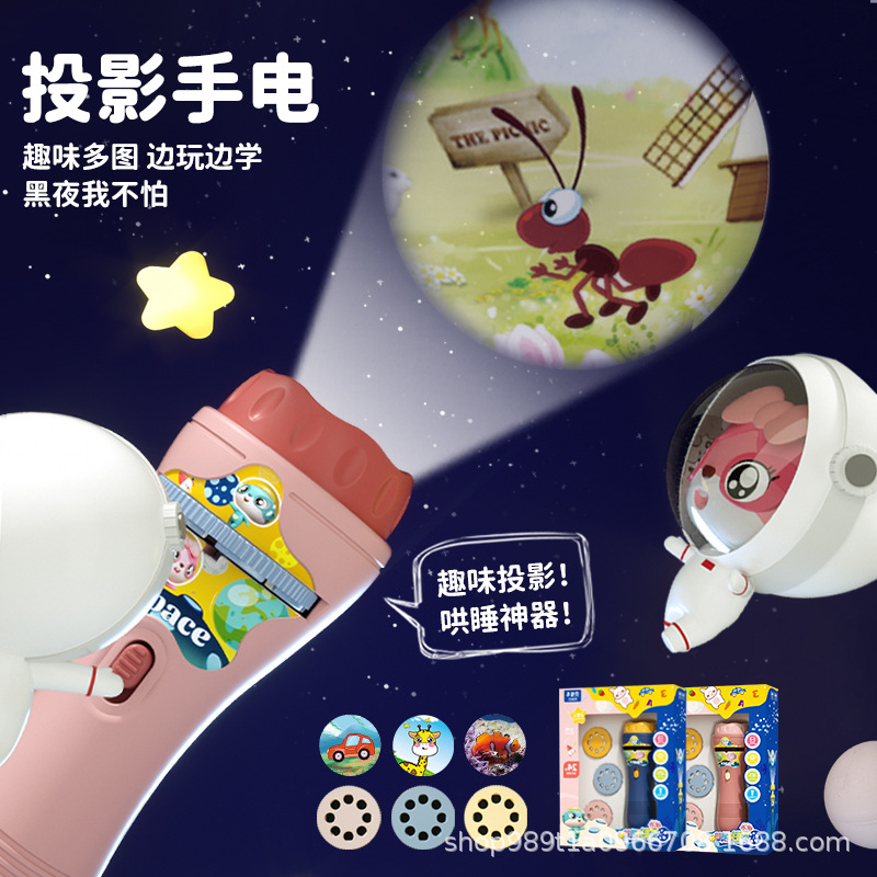 Projection Children's Flashlight Baby Boy Cartoon Early Education Perception Animal Sleeping Light-Emitting Toys Night Market Stall Wholesale