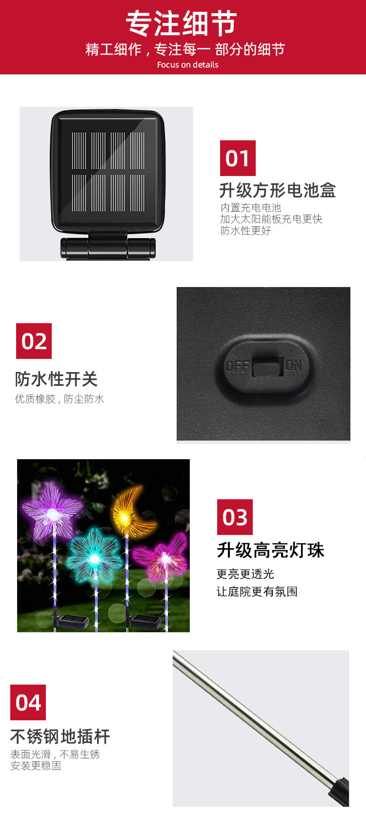 Nuodake Electronics Factory has set up a stall at the Yiwu International Commerce City Phase II, G District, 2nd floor, 40th door, 11th street, glass stall 15100-15101, two storefronts. We mainly produce lighting: outdoor floodlights, solar street lights, outdoor headlights, rechargeable flashlights, solar lanterns; car lights, motorcycle lights, various car and motorcycle modification lights, etc. Come and have a look if you have time. You can add WeChat too.