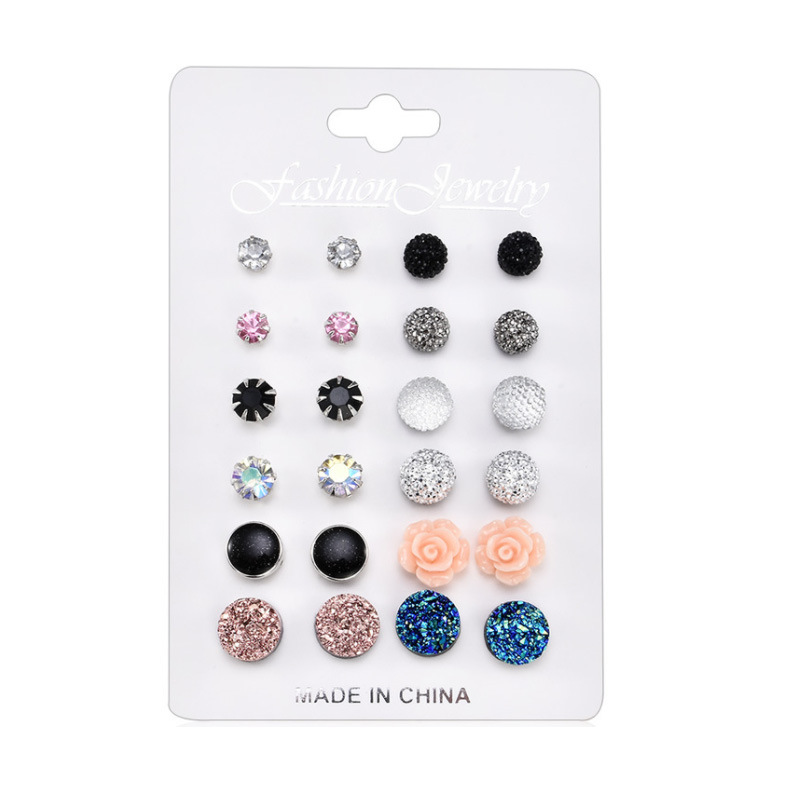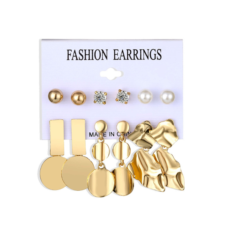 Qifu New European and American Inlaid Pearl Women's Earrings Creative Amazon Gold Ear Ring Suit 9 Pieces Set