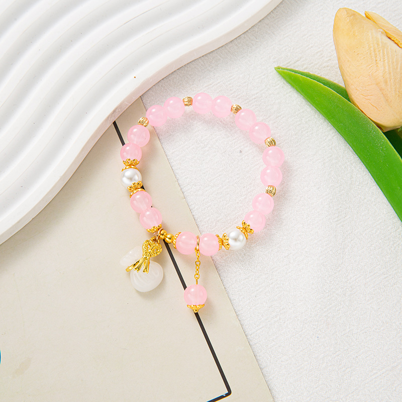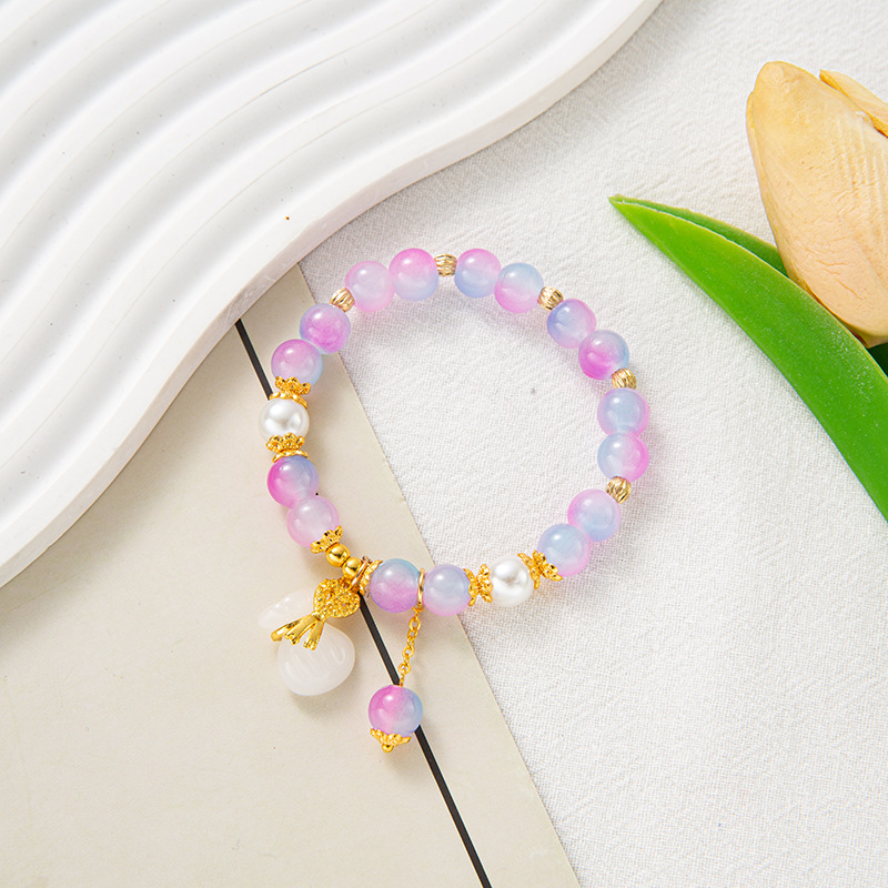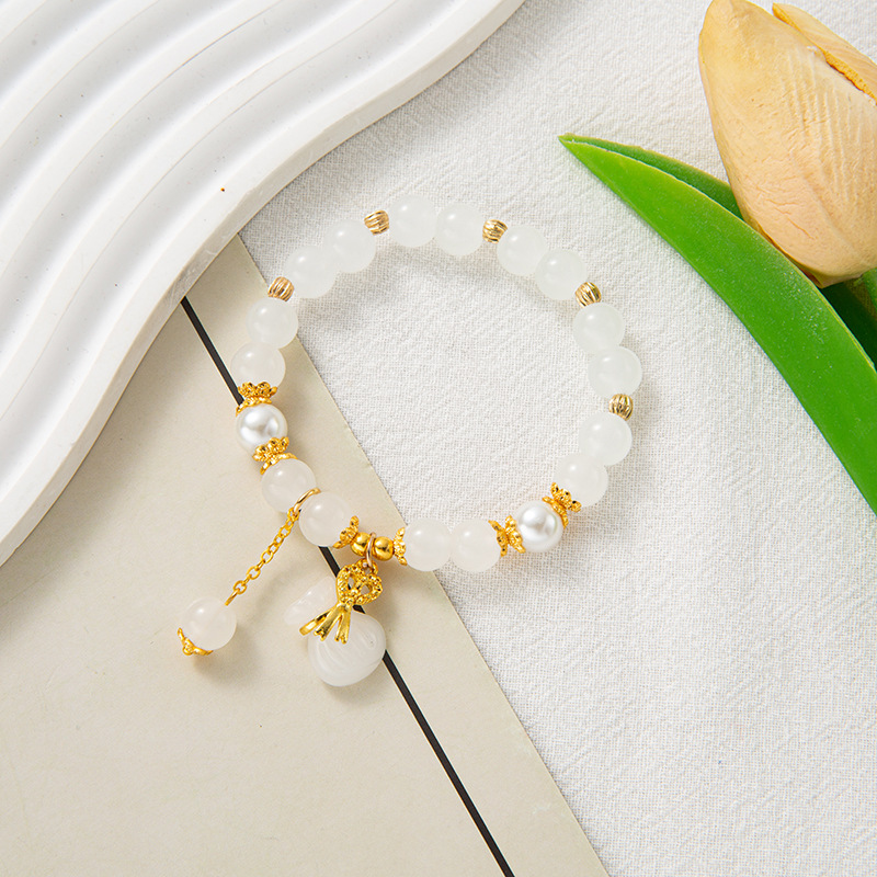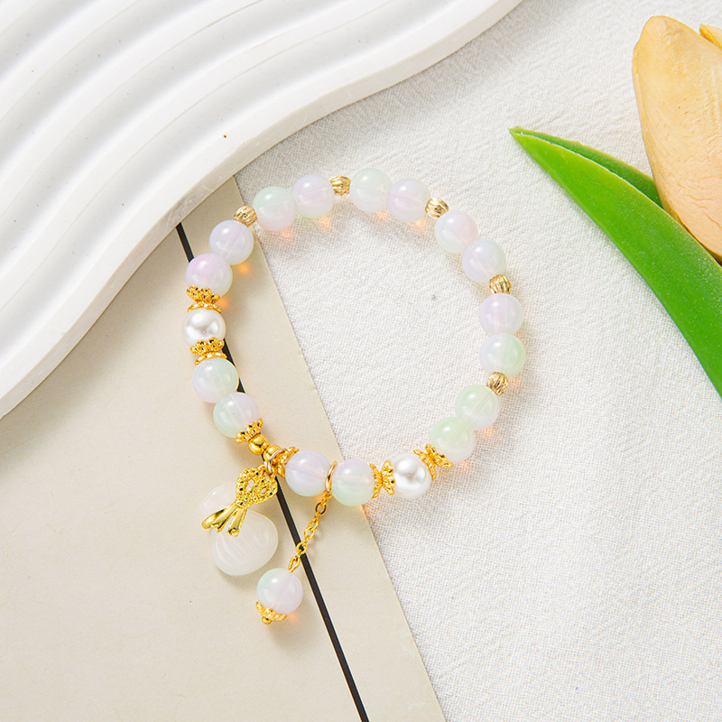 2023 New Peace Buckle Blessing Card Bracelet Na Blessing Card Crystal Hot Flower Jade Broken Imitation Pearl Live E-Commerce Gift