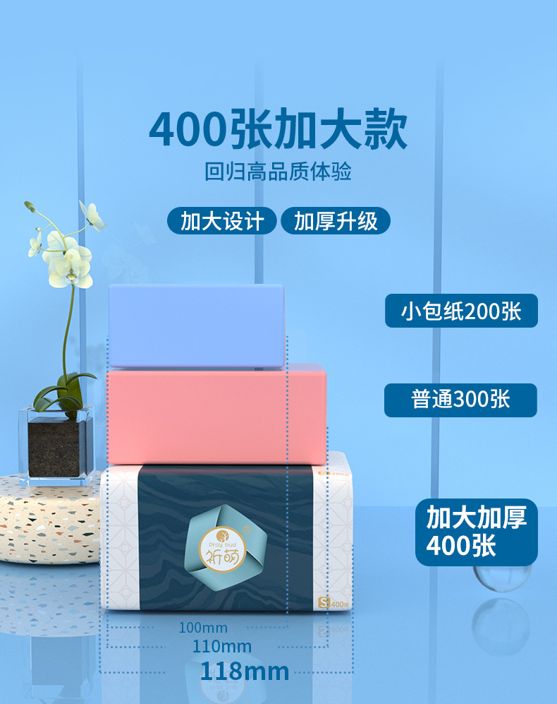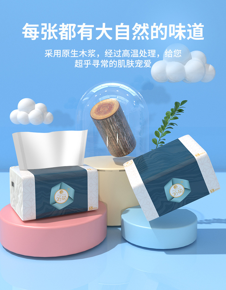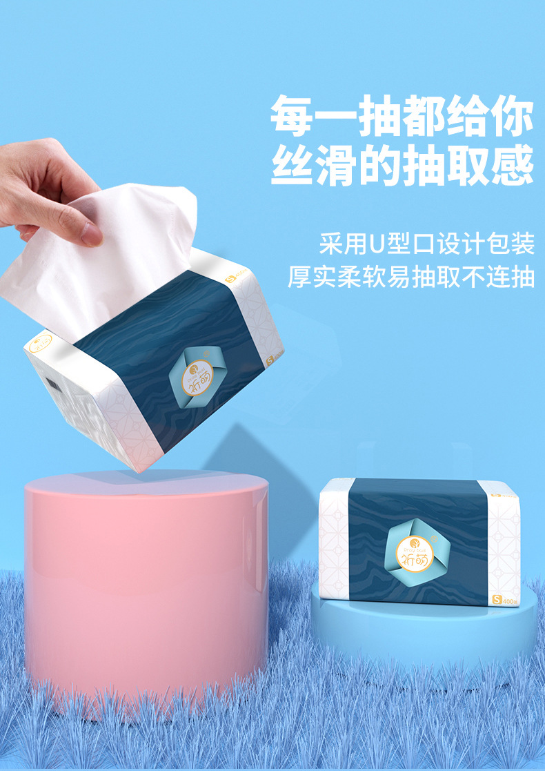 Qimeng Paper Extraction Household Wholesale 400 Pieces Full Box Napkin Generation Log Facial Tissue Extraction Tissue Manufacturer