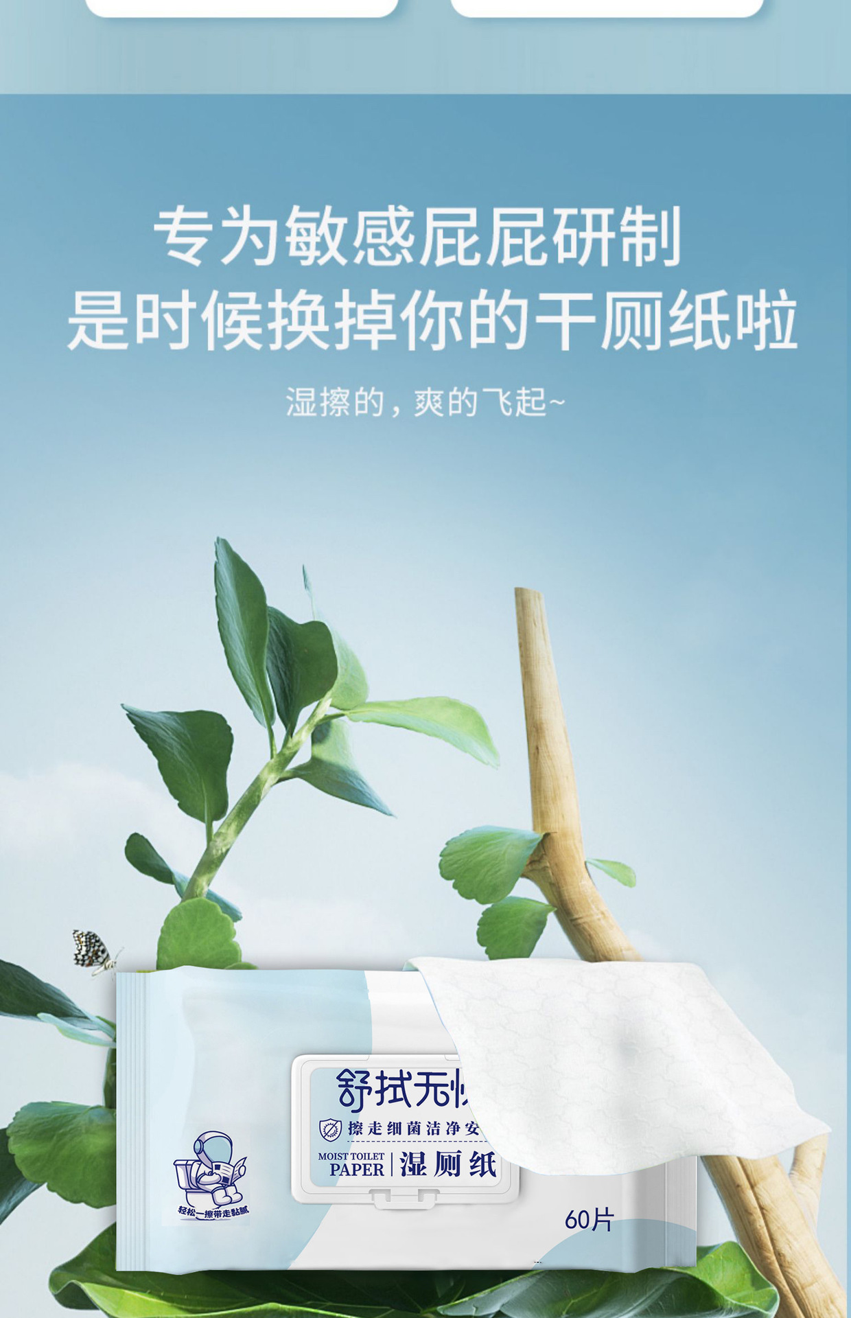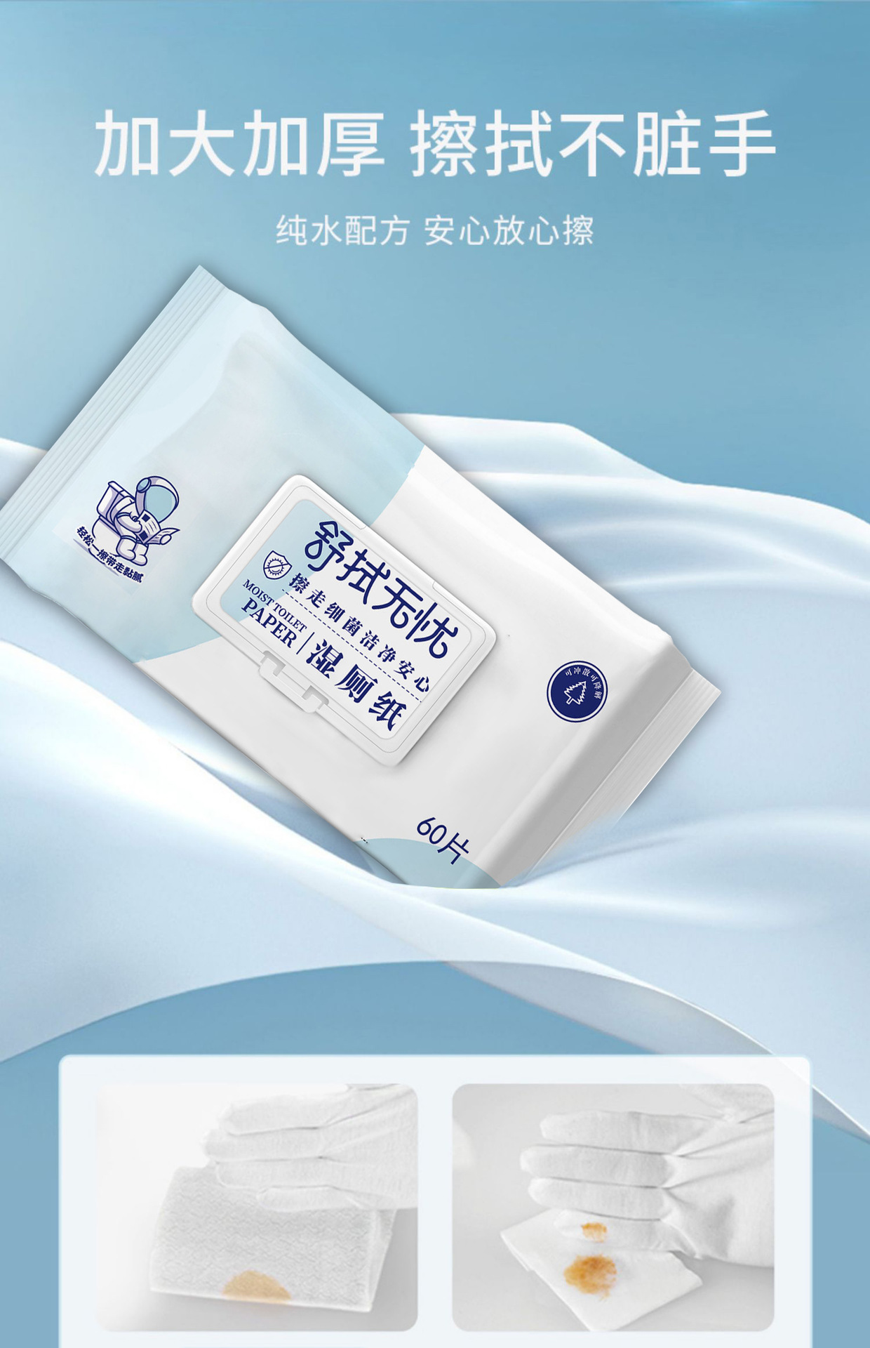 Disposable Wet Toilet Paper Private Parts Sterilization Household Sanitary Wipes Adult Male and Female 60 Pieces Large Package