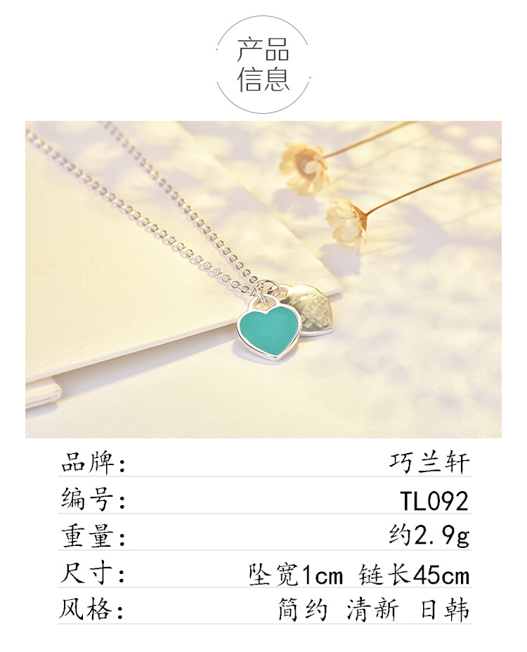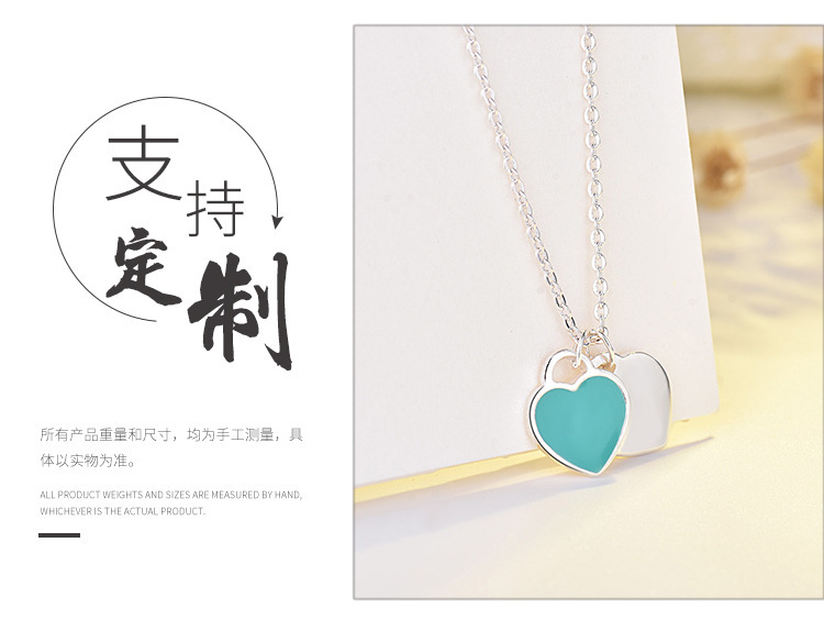 Qiao Lanxuan Simple Heart-Shaped Oil Dripping Enamel Red Blue Pink Three-Color Heart-Shaped T Necklace Clavicle Chain Women's Ornament