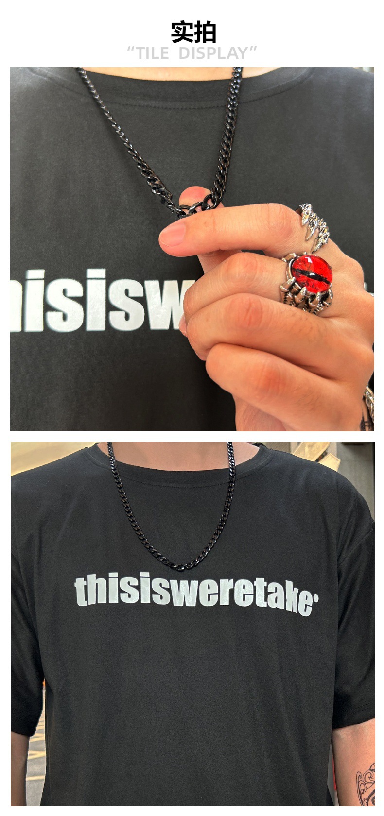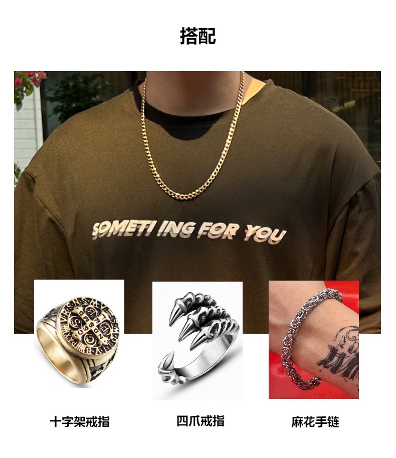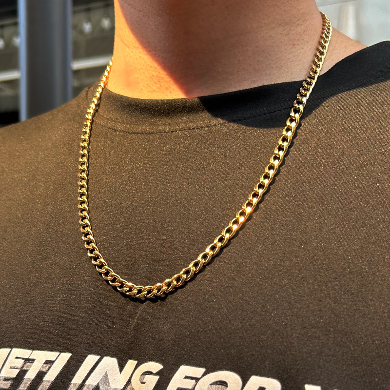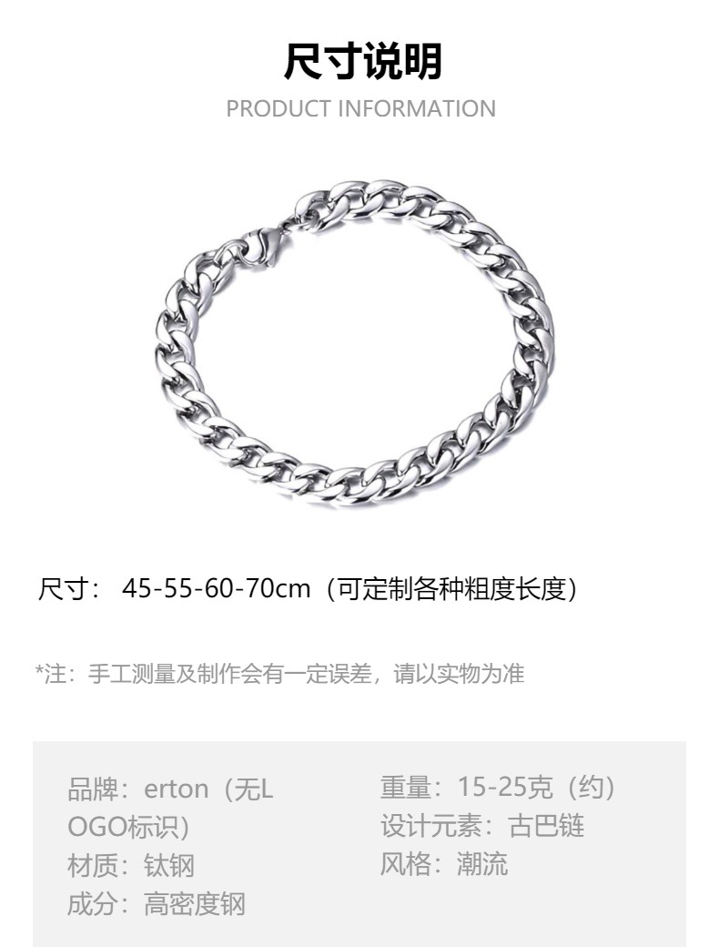 Cross-Border Hot Ornament Supply Black Paint Unilateral Cuban Link Chain Men's Titanium Steel Non-Color Changing Personality Fashion Necklace