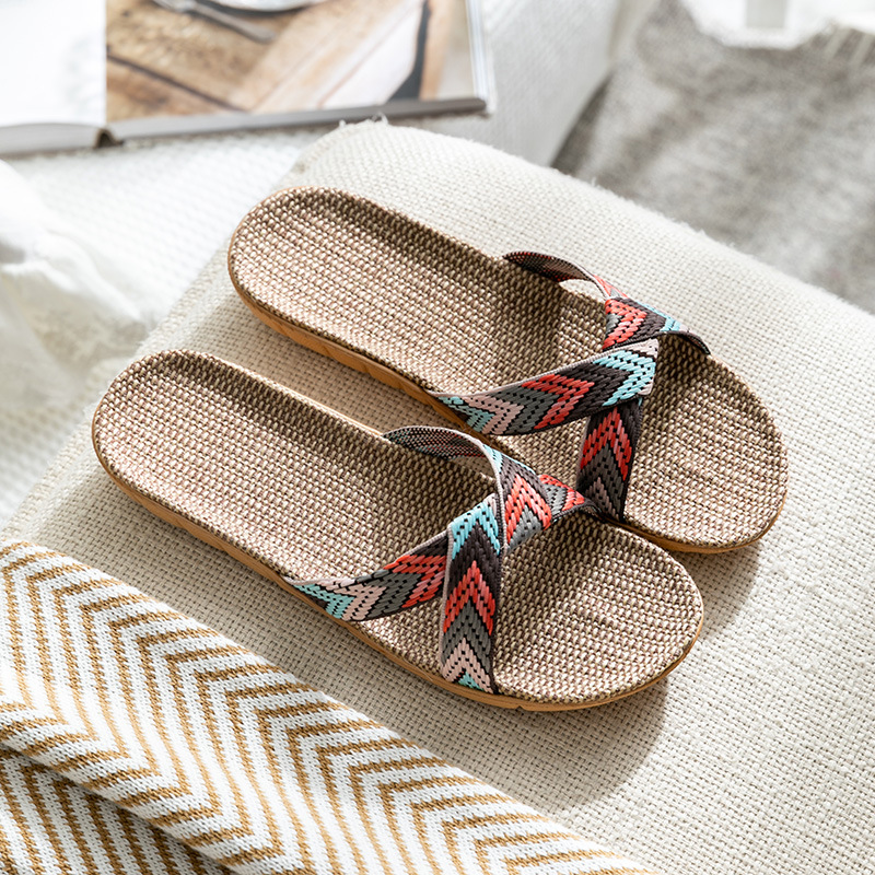 Summer Cross Linen Slippers Female Couple Indoor Home Mute Soft Bottom Slippers Male Home Home Shoes