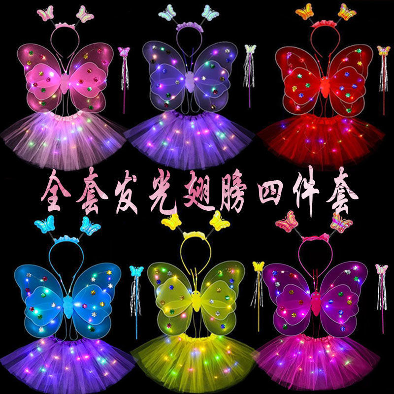 Children's Luminous Suspender Wings Girl Butterfly Wings Firefly Bee Toy Children Magic Fairy Stick