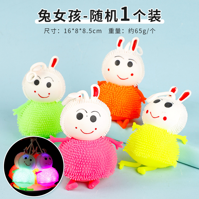 with Rope Luminous Hairy Ball Colorful Flash Ball Children's Small Toys Wholesale Square Stall Night Market Hot Supply