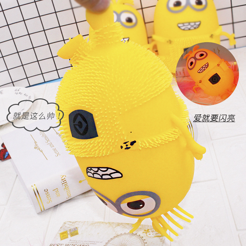 Factory Direct Sales Light-Emitting Electronic Toy Push Decompression Doll Night Market Stall Inflatable Children's Hairy Ball Toy