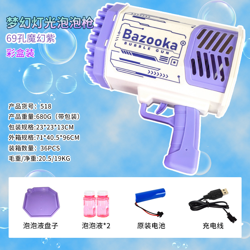 Internet Celebrity 69-Hole Gatling Bubble Gun 32-Hole Electric Handheld Bubble Machine Luminous Bubble Blowing Children's Toy Stall