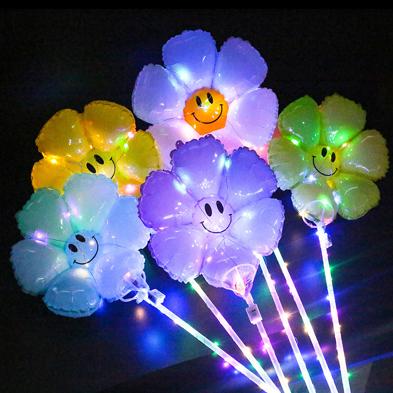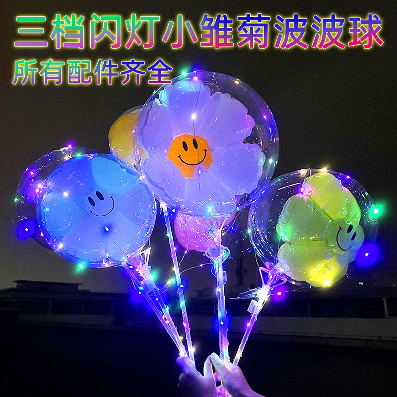 Internet Celebrity Flash Bounce Ball with Light Little Daisy 20-Inch Transparent Luminous Balloon Night Market Stall Push Toys Wholesale