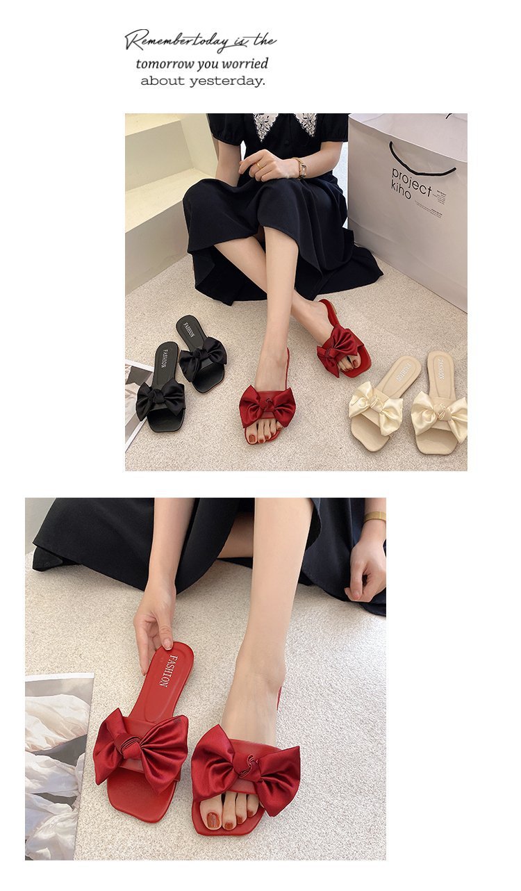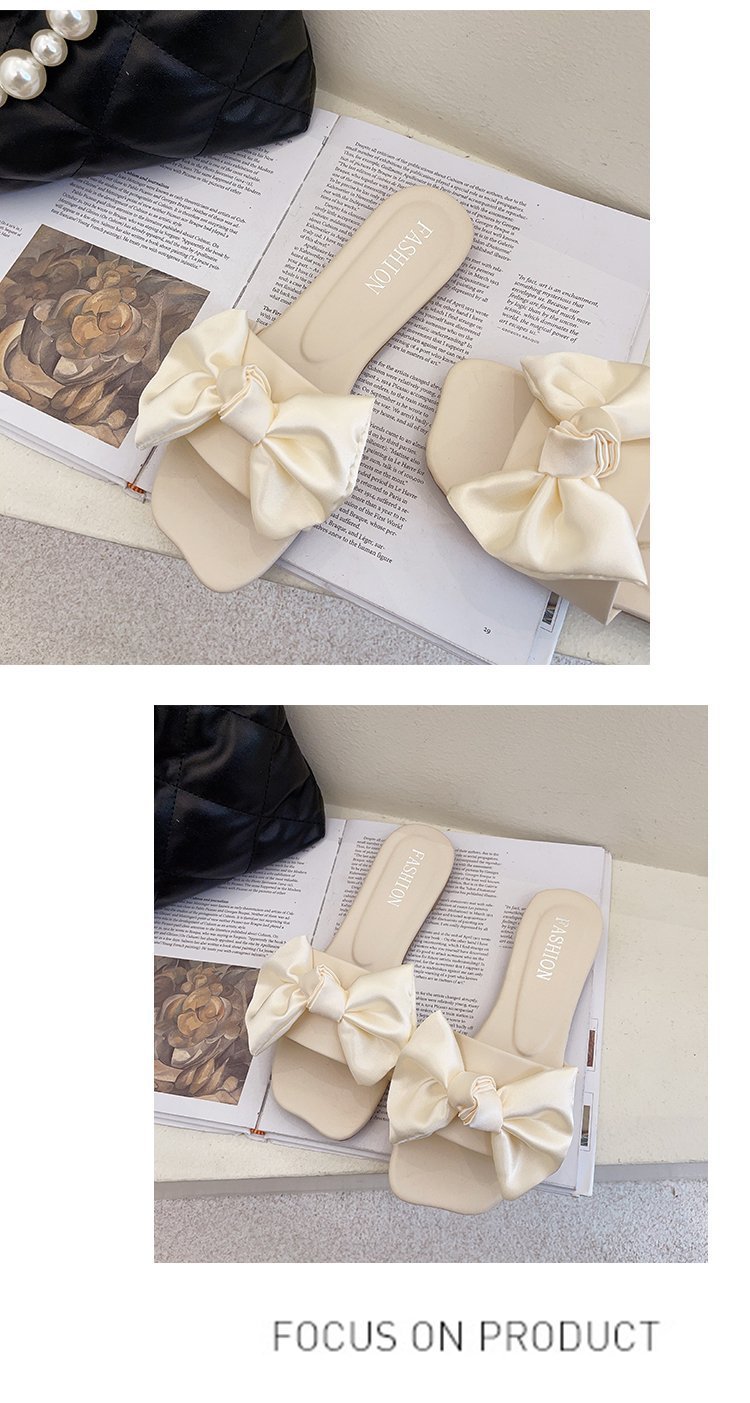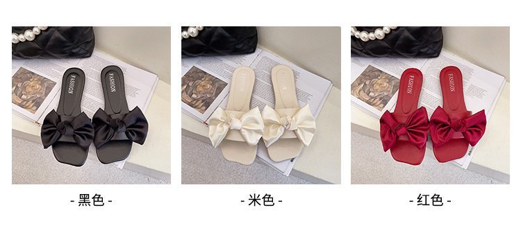 Foreign Trade Large Size Flat Bottom Slippers for Women 2022 Summer New Korean Style Bowknot Slippers for Women