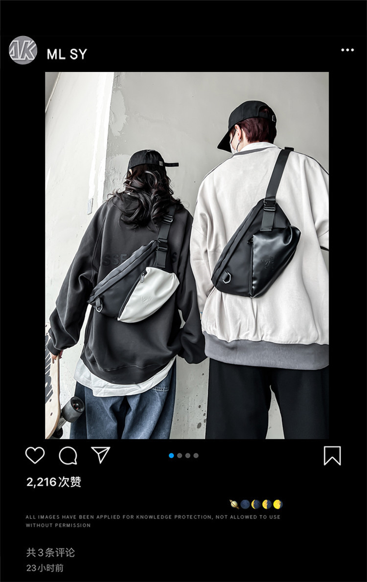 About Product:2023 Hong Kong wind trend couple cross-body chest bag street trend cross-body locomotive chest bag pu leather single shoulder cross-body chest bag