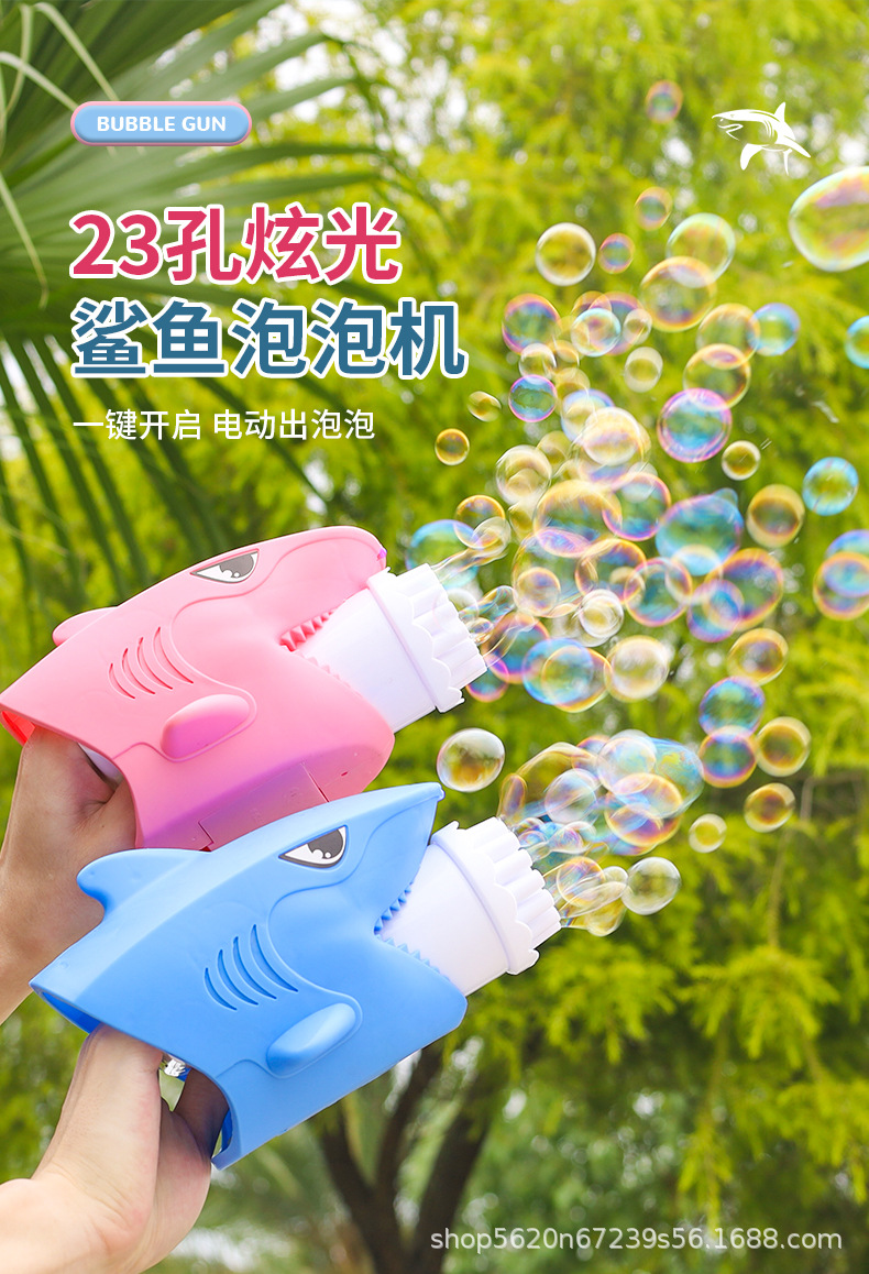 Factory Direct Sales 23-Hole Shark Light Bubble Machine Children Gatling Bubble Machine Wholesale Electric Stall Six One