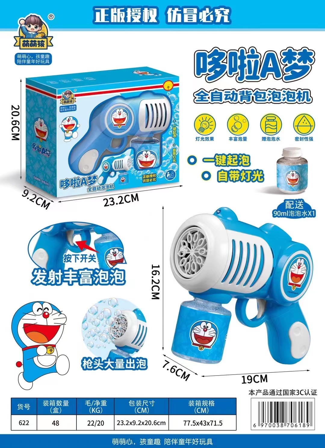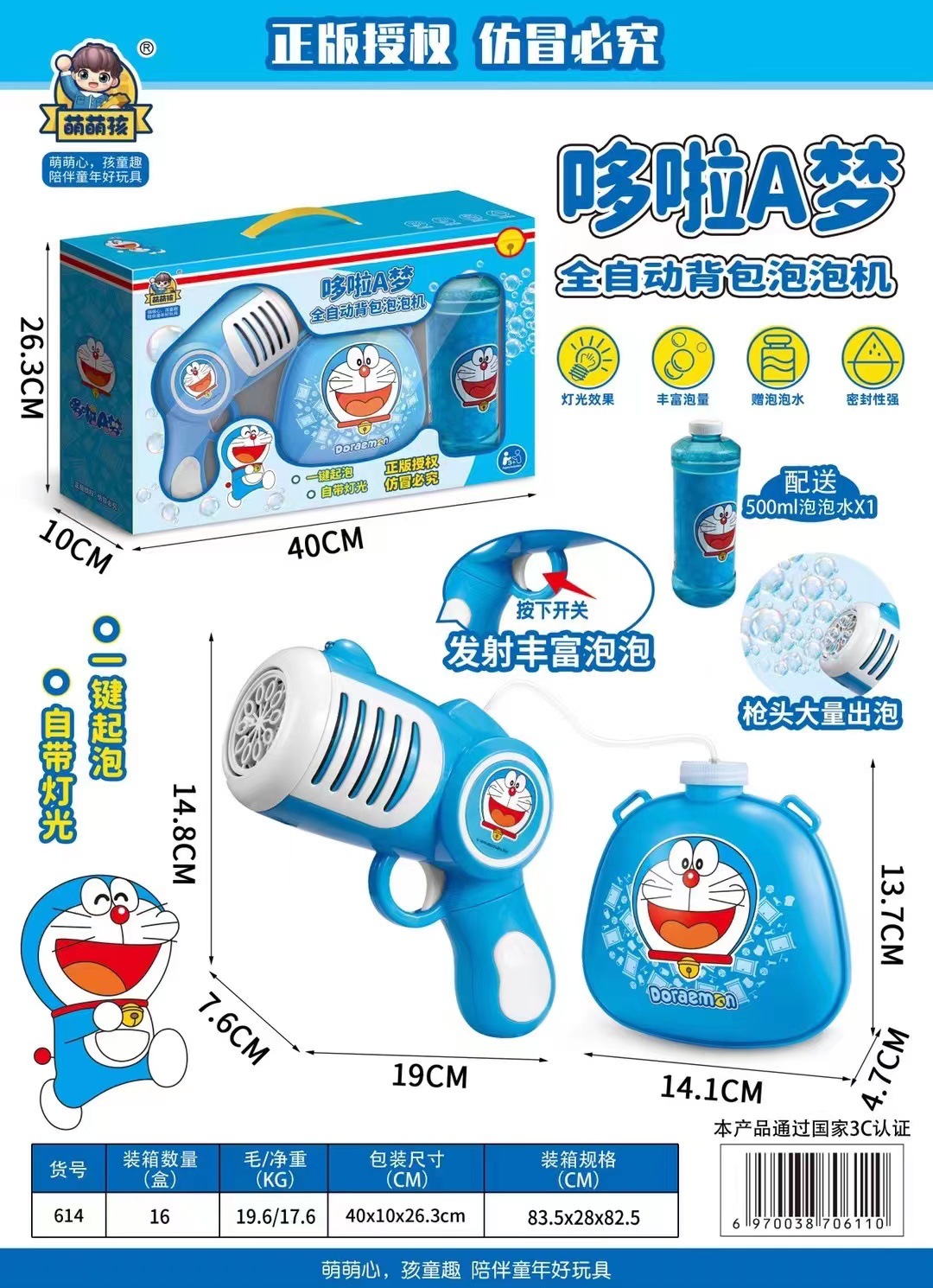 Officially Authorized Doraemon Bubble Gun Electric Automatic Porous Handheld Bubble Gun Hot Gatling Toys