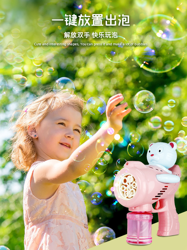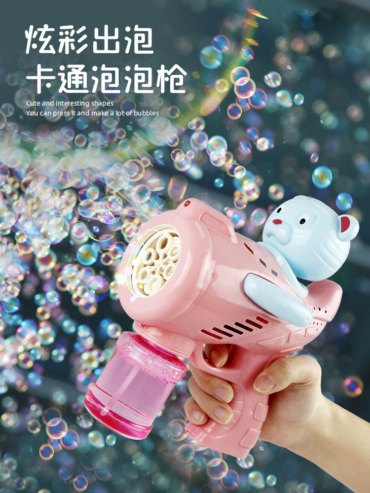 New Tiger Electric Bubble Gun Automatic Lighting Music Bubble Blowing Machine Children's Handheld Outdoor Bubble Toy