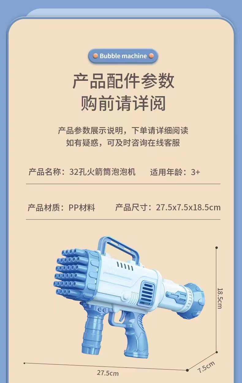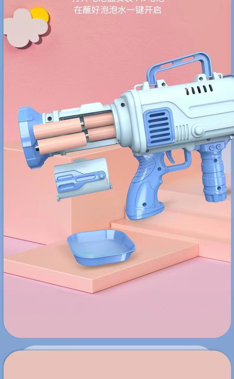 32-Hole Electric Bubble Maker Gatling Children's Bubble Gun Bazooka Barrel Shape Stall Supply Small Gifts Cross-Border