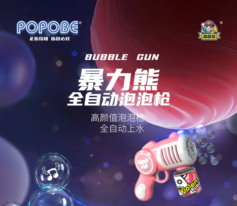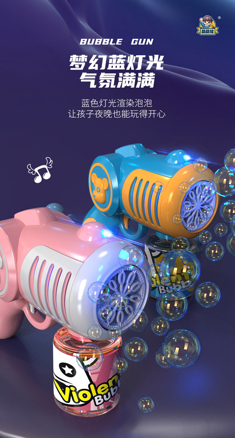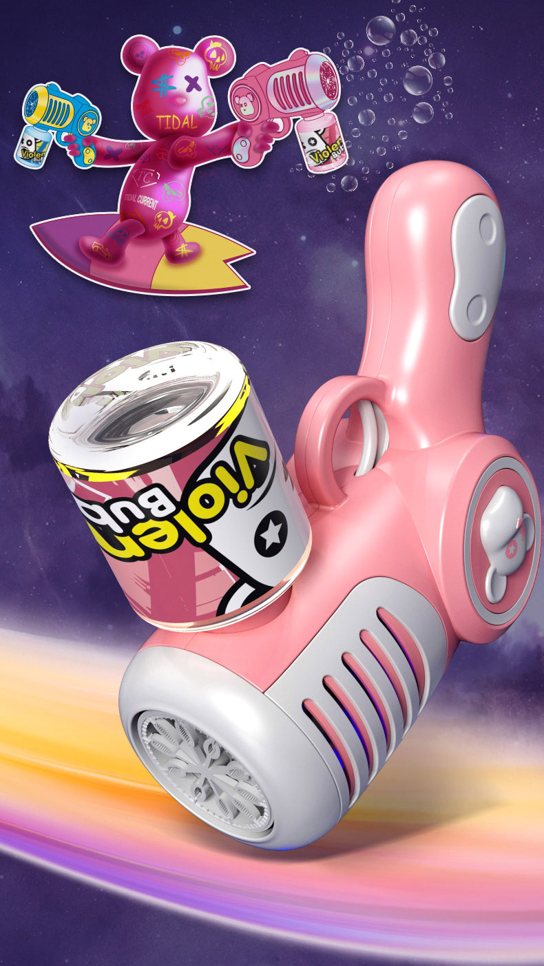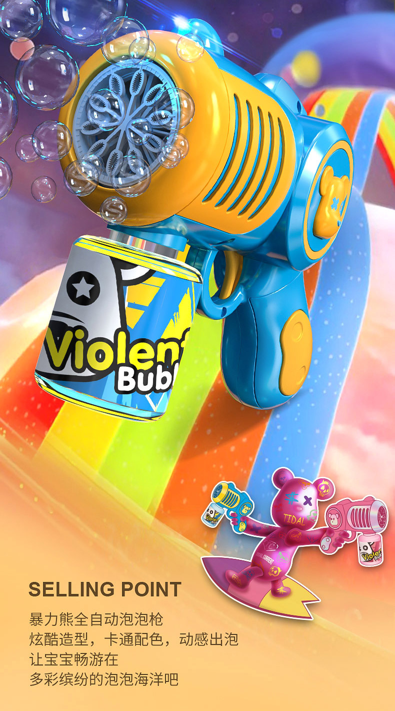 New Genuine Authorized Violent Bear Bubble Gun Boys and Girls Children Handheld Electric Cartoon Bubble Blowing Machine Toys