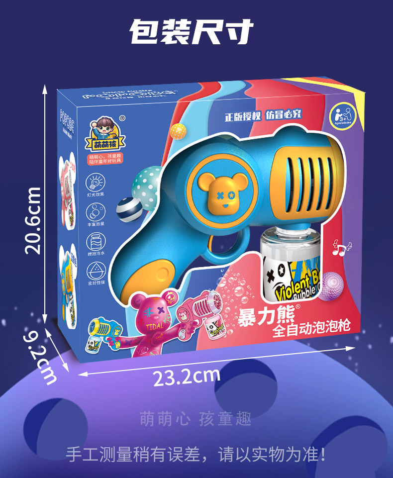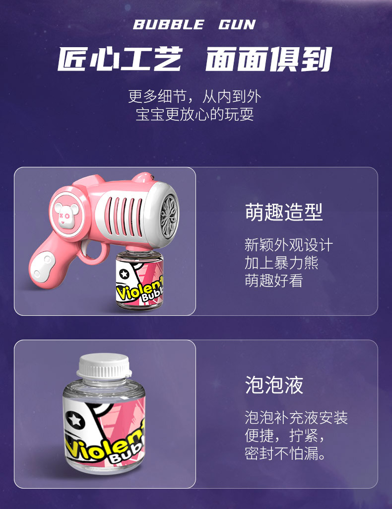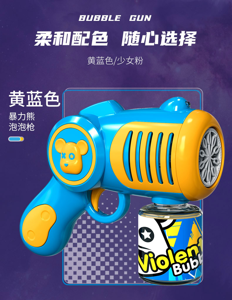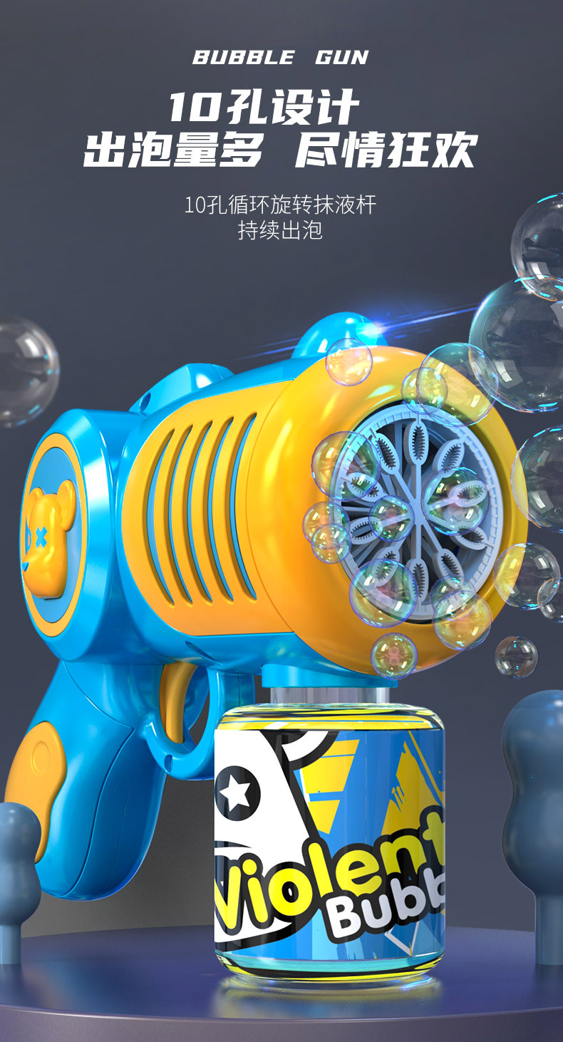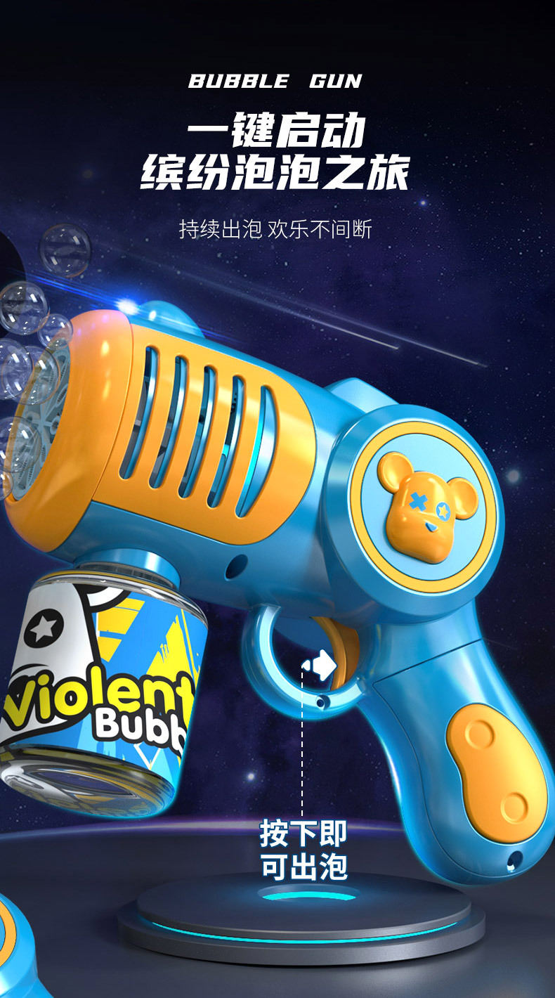 New Genuine Authorized Violent Bear Bubble Gun Boys and Girls Children Handheld Electric Cartoon Bubble Blowing Machine Toys