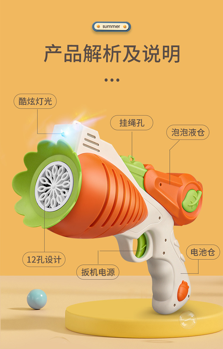 Children's Radish Bubble Machine Stall Handheld Bubble Machine Automatic Dinosaur Bubble Gun Bubble Blowing Garint Toy