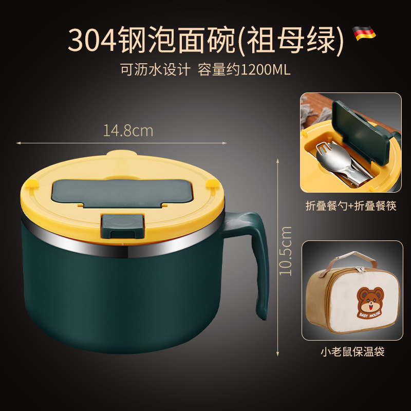 large capacity 1200ml [emerald] + folding spoon chopsticks + handbag