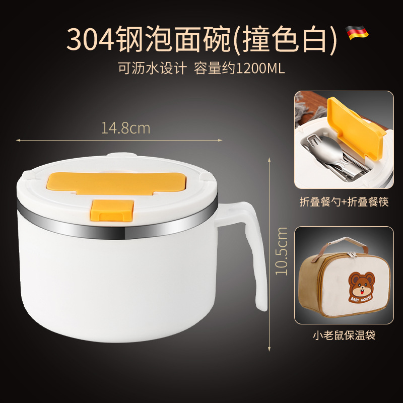 large capacity 1200ml [contrast color white] + folding spoon chopsticks + handbag