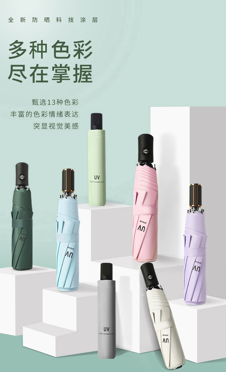 Automatic Umbrella Wholesale Printing Logo Sunny Rain Advertising Umbrella Sun Protection UV Protection Sunshade Folding Sun Umbrella