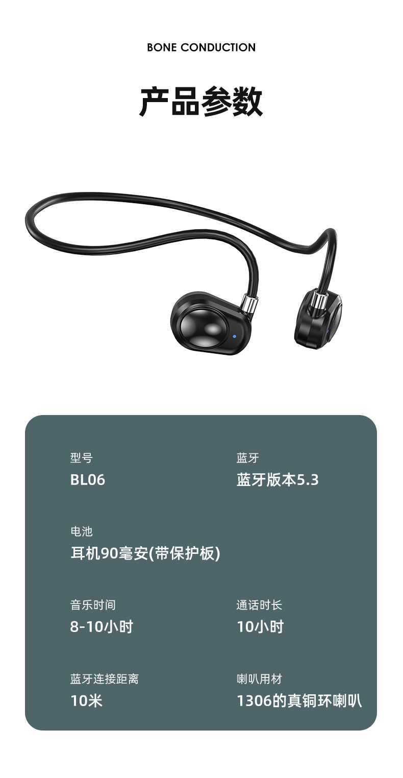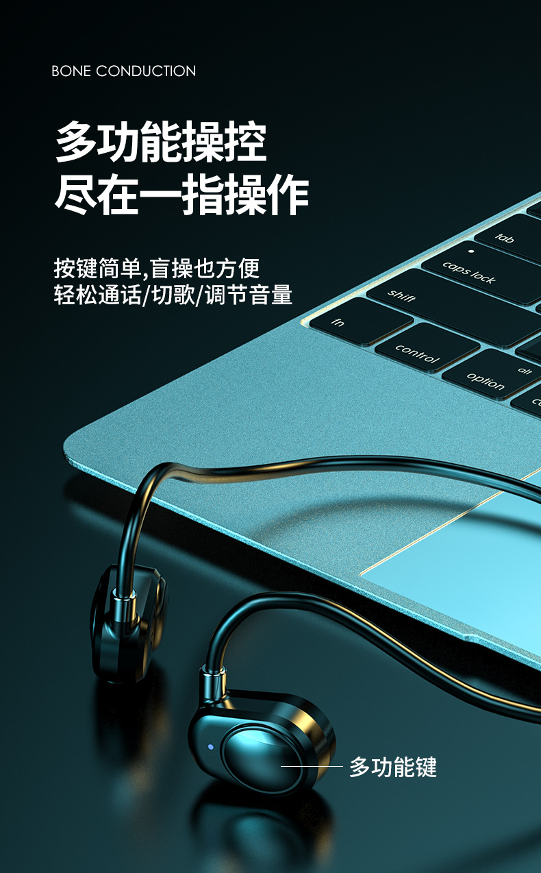 New Bluetooth Headset for Bone Conduction Ear-Mounted Non In-Ear Wireless Sports Running Bluetooth Headset Exclusive for Cross-Border