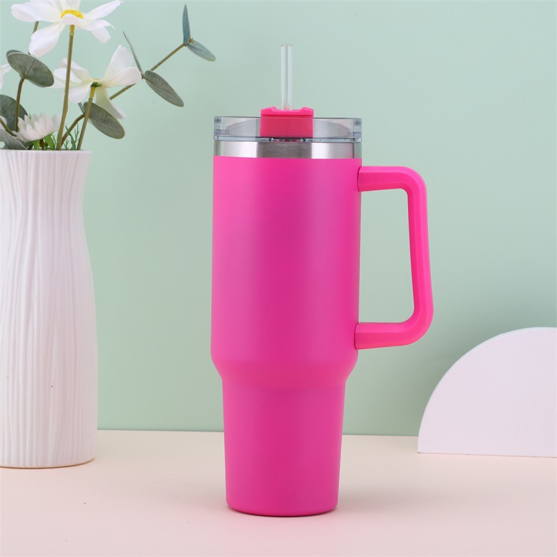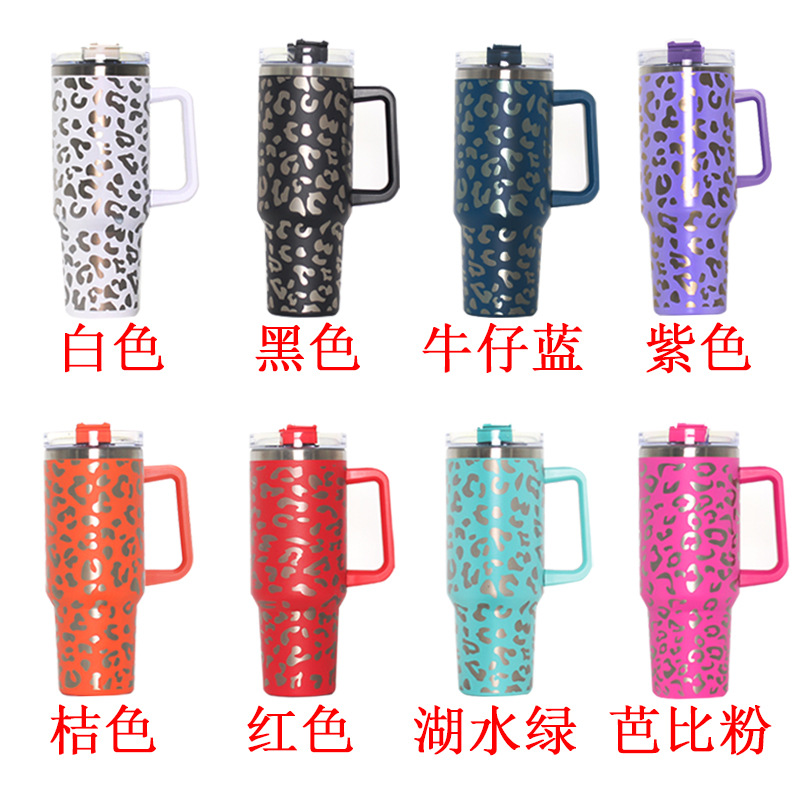 Cross-Border New Arrival Leopard Print 40Oz Handle Cup Cup 304 Stainless Steel Large Ice Cup Heat and Cold Insulation Car Water Cup