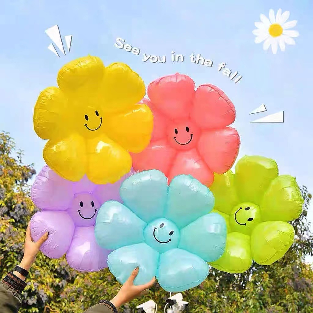 Flower Little Daisy SUNFLOWER Smiley Face Hand-Held Balloon Push Night Market Stall Birthday Arrangement Photo Balloon Wholesale