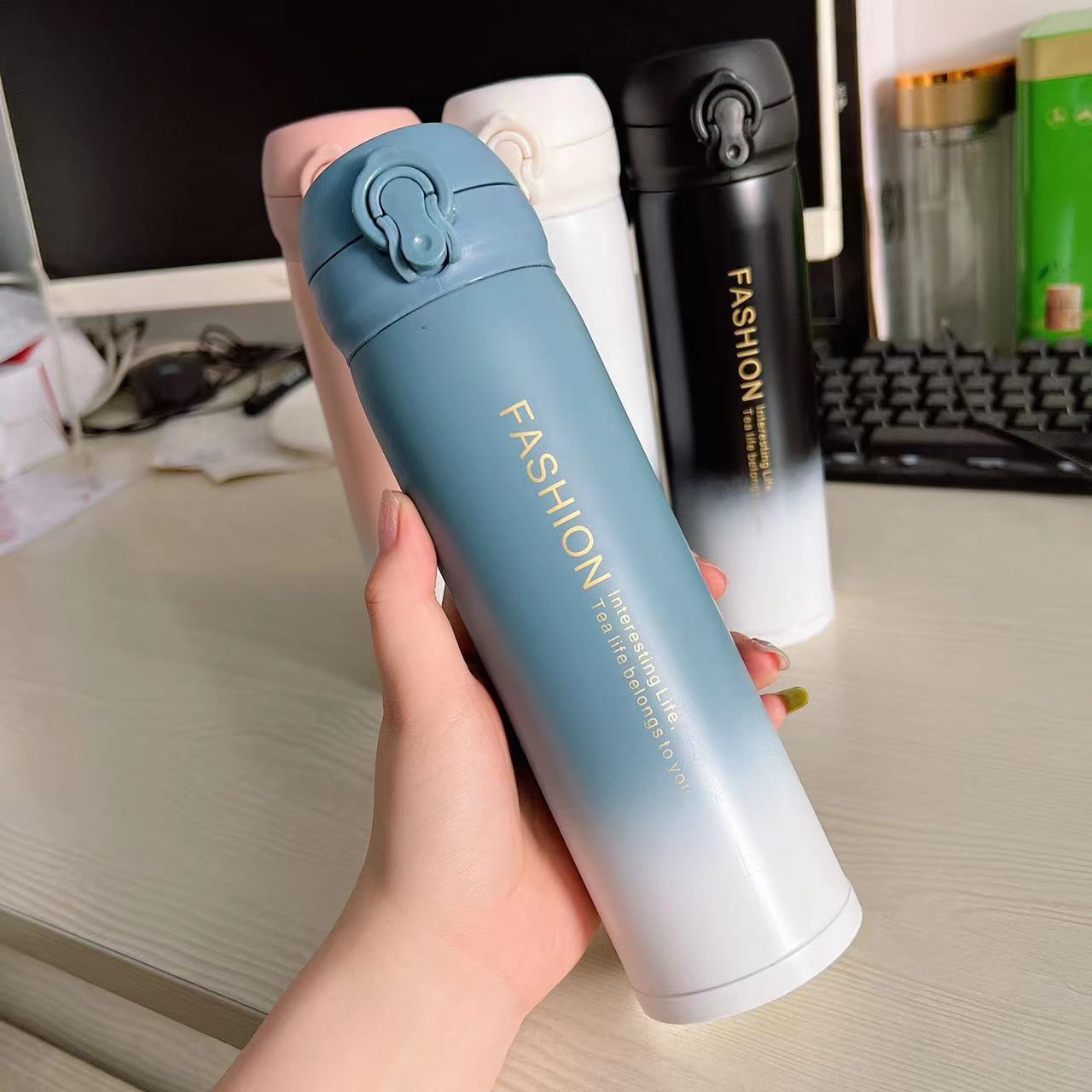 Student Fashion Vacuum Cup Gradient Color Internet Hot New Bounce Cover Fresh 304 Stainless Steel Handy Cup Water Cup