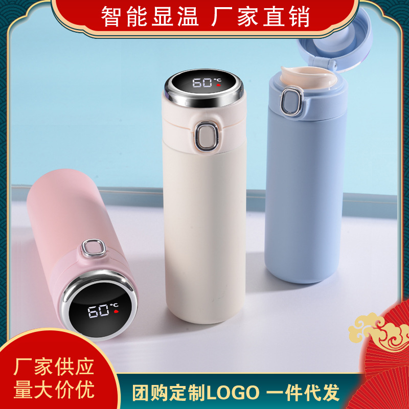Wholesale Intelligent Temperature Measuring 304 Stainless Steel Vacuum Cup Pea Cup Water Cup Business Straight Cup Large Capacity Gift Logo