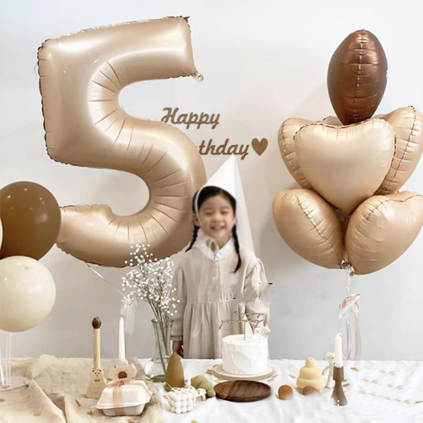 New Ins Style Party Baby Full-Year Birthday Decorations Arrangement 32-Inch Caramel Cream Color Digital Aluminum Film Balloon