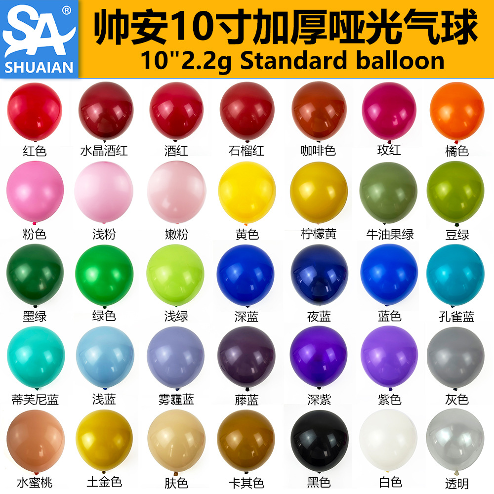 Shuai'an Cross-Border 10-Inch 2.2G Matte Balloon Thickened Party Decoration Festival Birthday Arrangement Rubber Balloons Wholesale