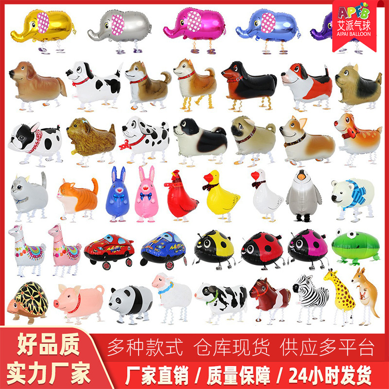 Cartoon Pet Walking Balloon Aluminum Film Balloon Walking Walking Pig Helium Balloon Wholesale Stall Birthday Party