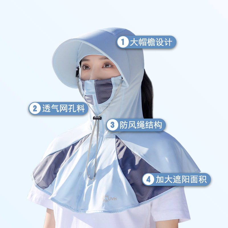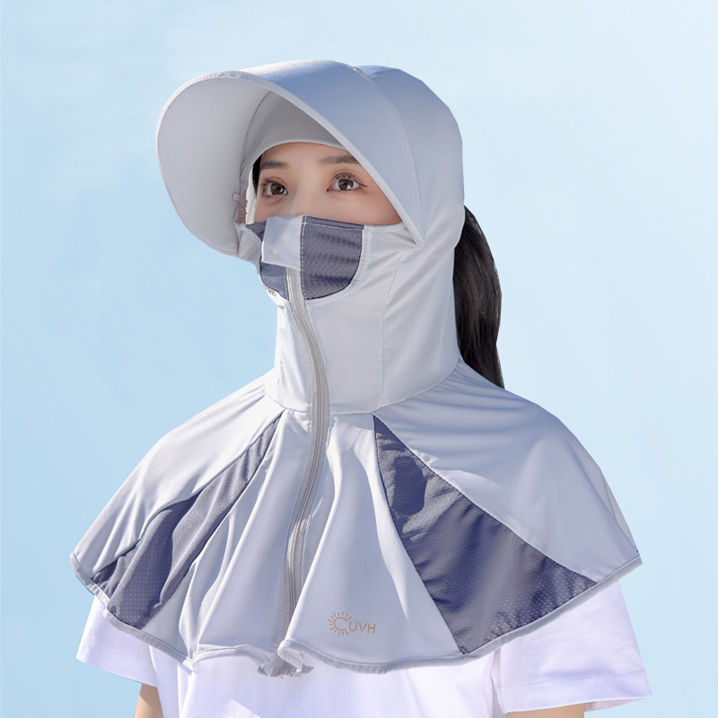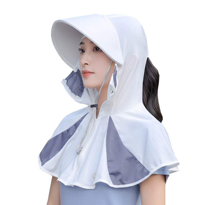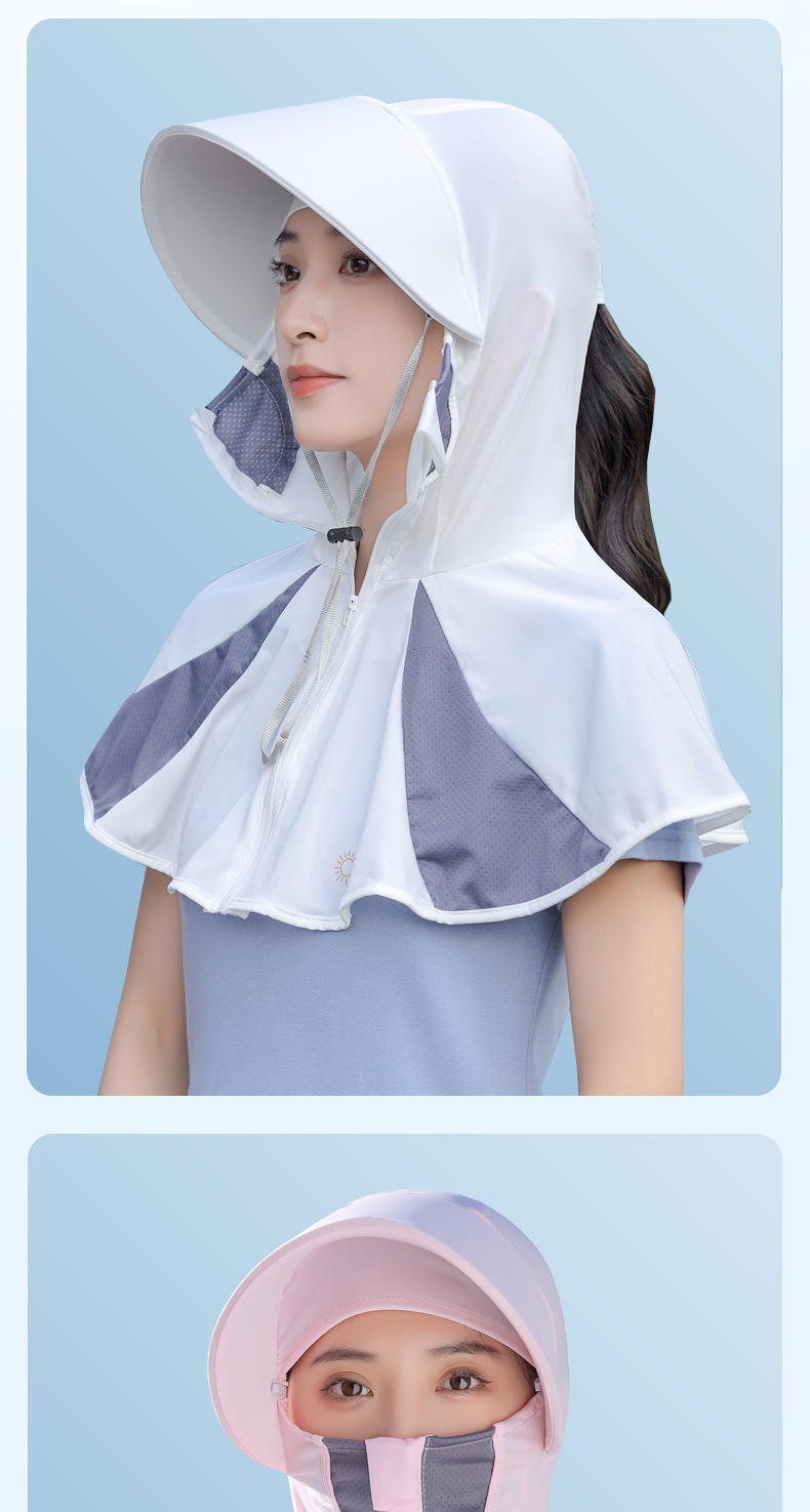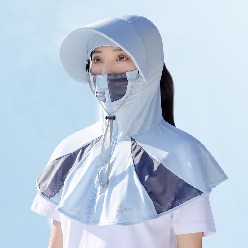 Ice Silk Sun Protection Mask Summer Integrated Neck Protection Sun Hat Female Big Brim Full Face UV Protection Cycling Sun Hat