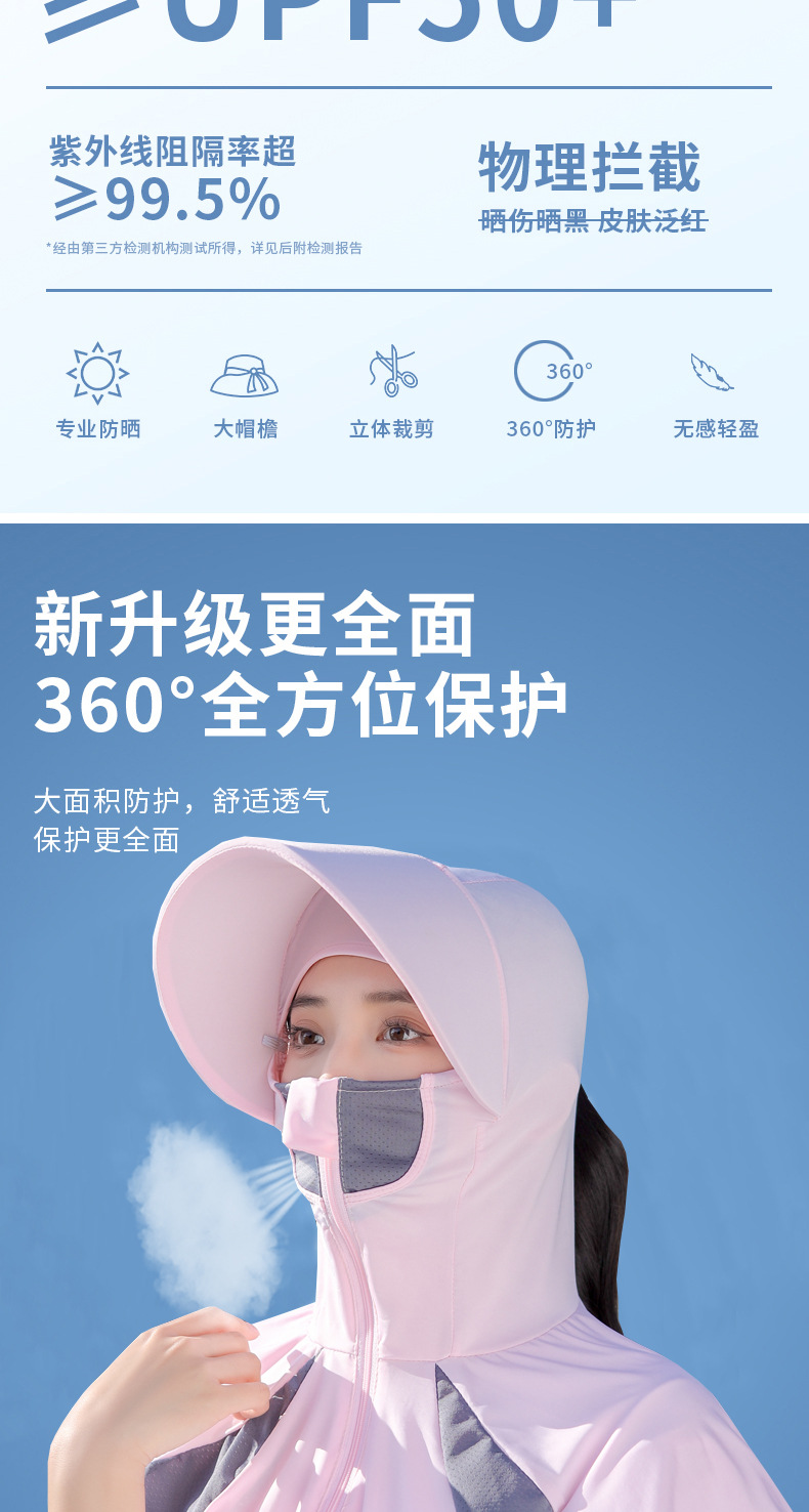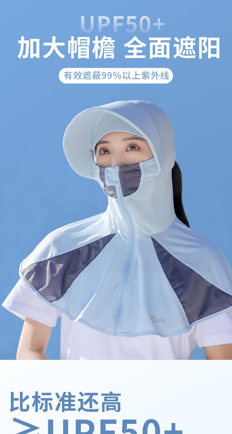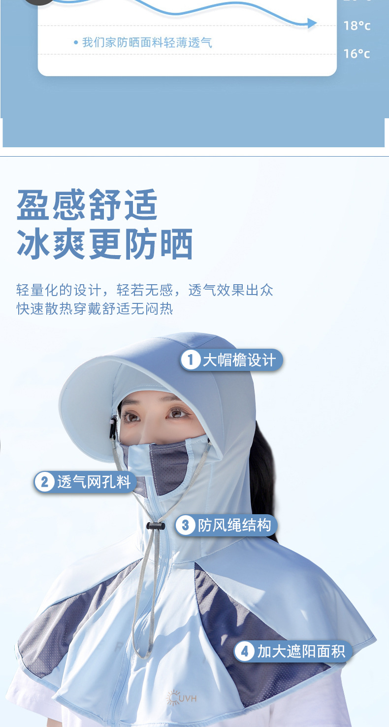Ice Silk Sun Protection Mask Summer Integrated Neck Protection Sun Hat Female Big Brim Full Face UV Protection Cycling Sun Hat