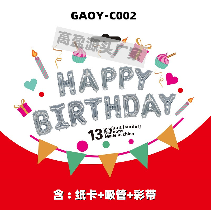 Imitation Beauty 16-Inch Birthday Letter Set Paper Card Hardcover Happy Birthday Aluminum Balloon Wholesale Factory Direct Sales