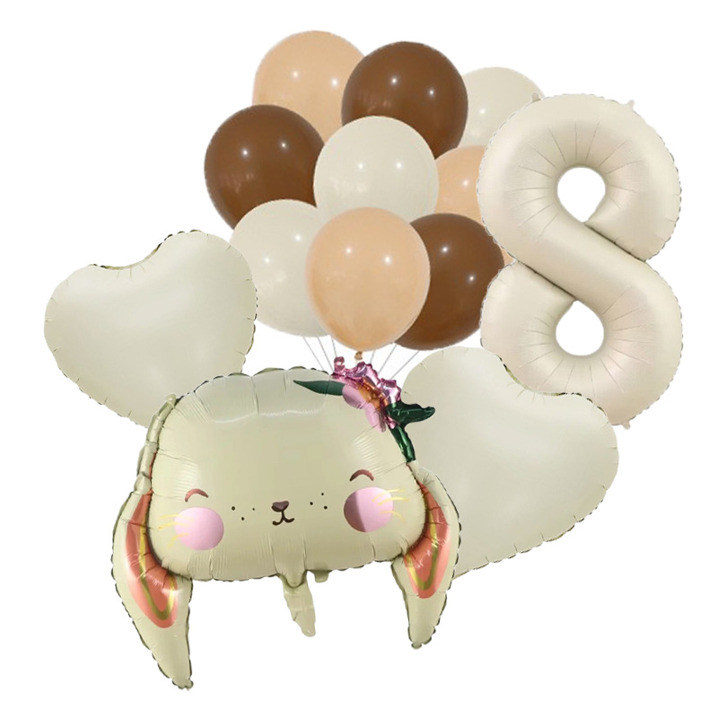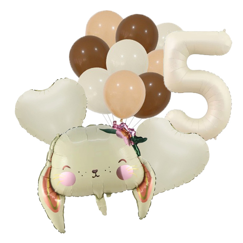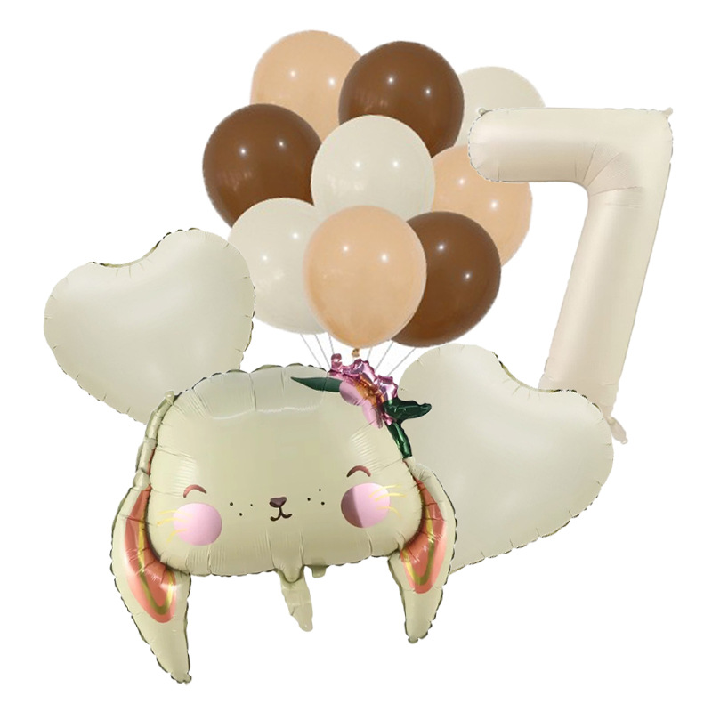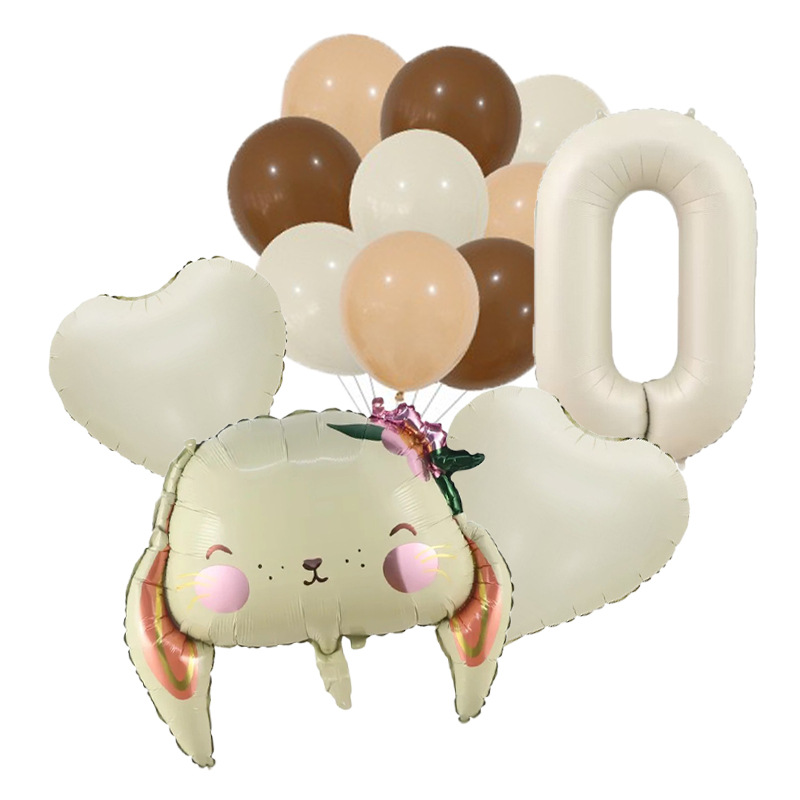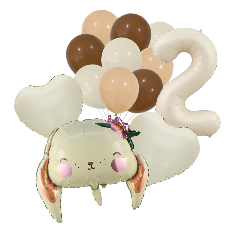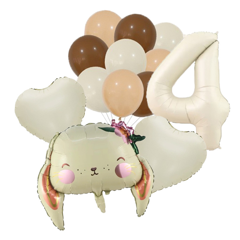 Cross-Border New Children's Cartoon Long Eared Rabbit Cream Color Digital Birthday Party Background Decoration Aluminum Film Balloon Package