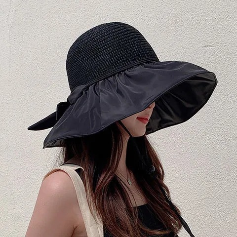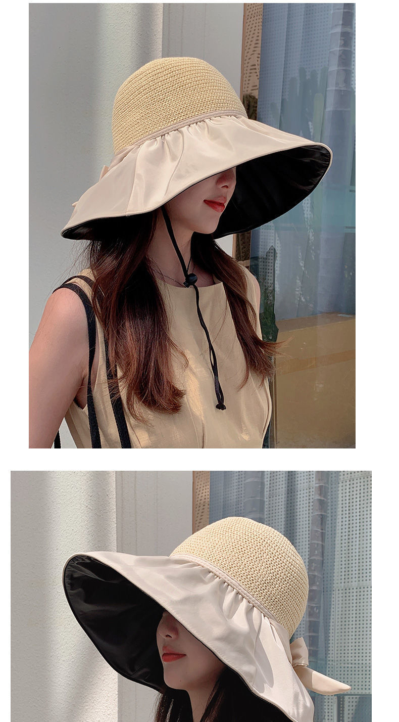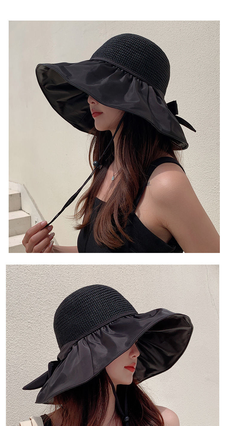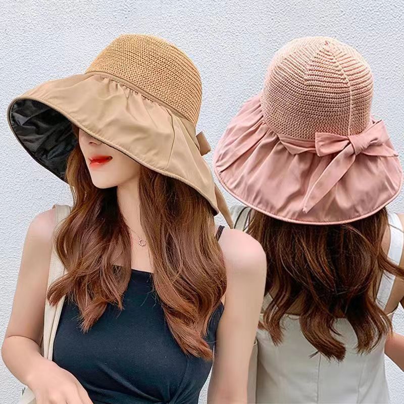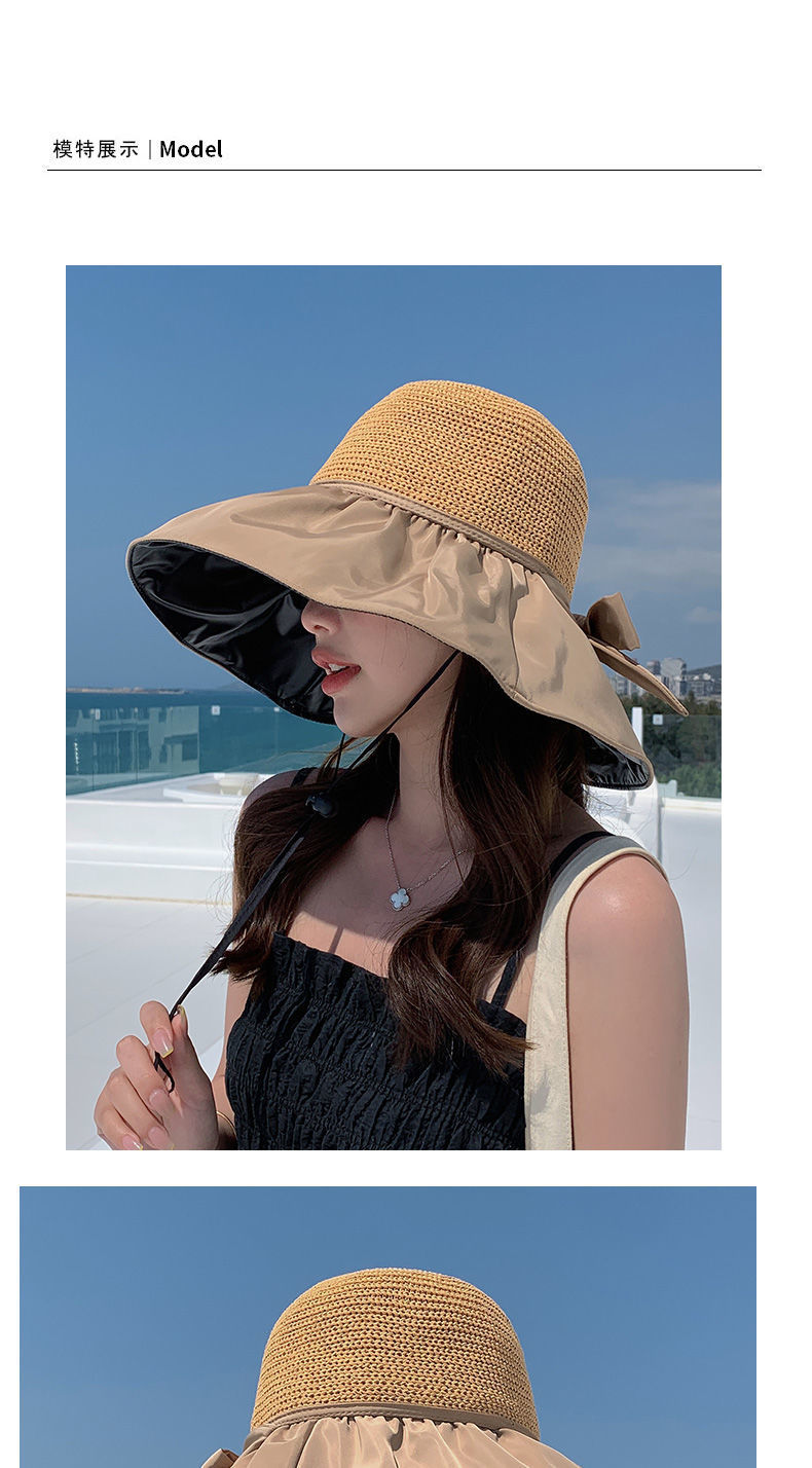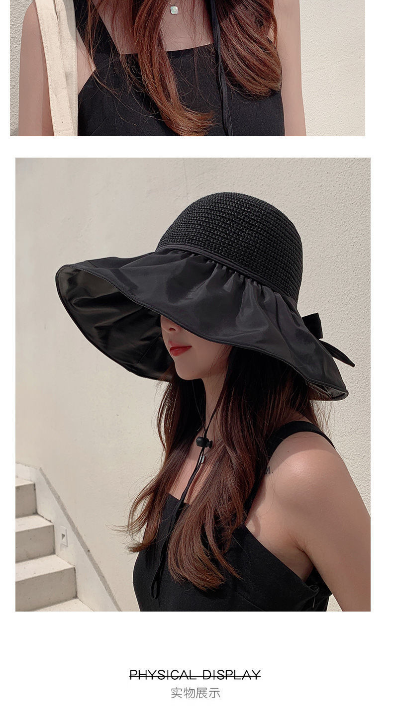 Vinyl Beach Hat Sun Hat Female Summer Hollow-out Straw Hat UV Big Brim Face-Covering Sun-Proof Sun Fisherman Hat