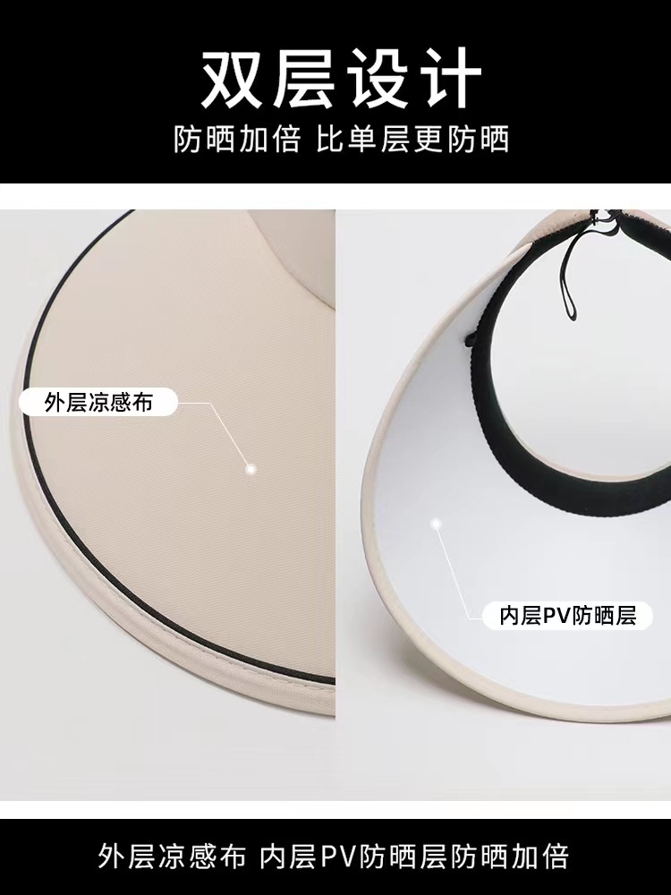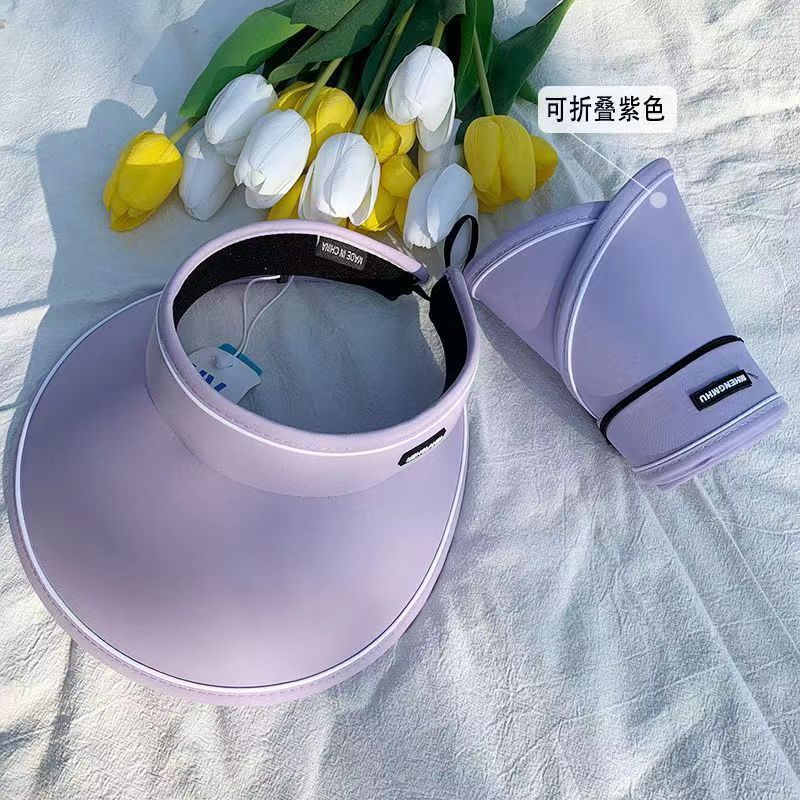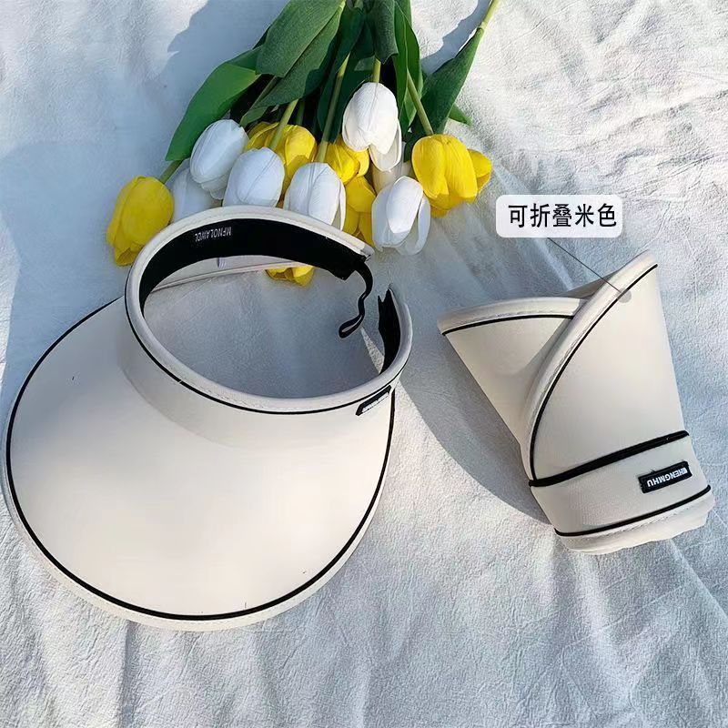 New Women's Summer Sun Protection Hat Big Brim Cover Face Roll Candy Hat Outdoor Sun Hat Cycling without Turning UV Topless Hat