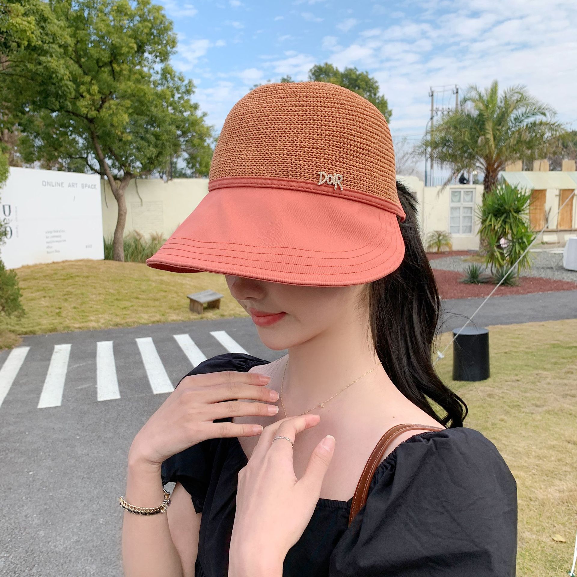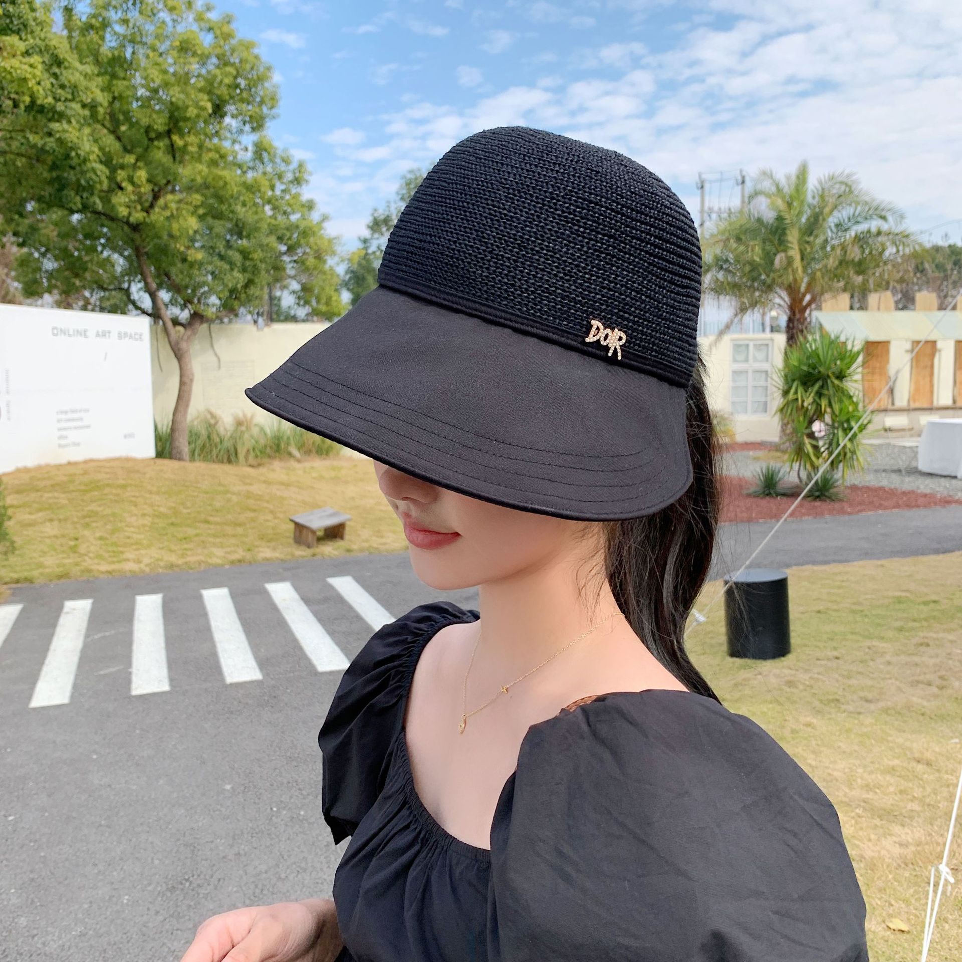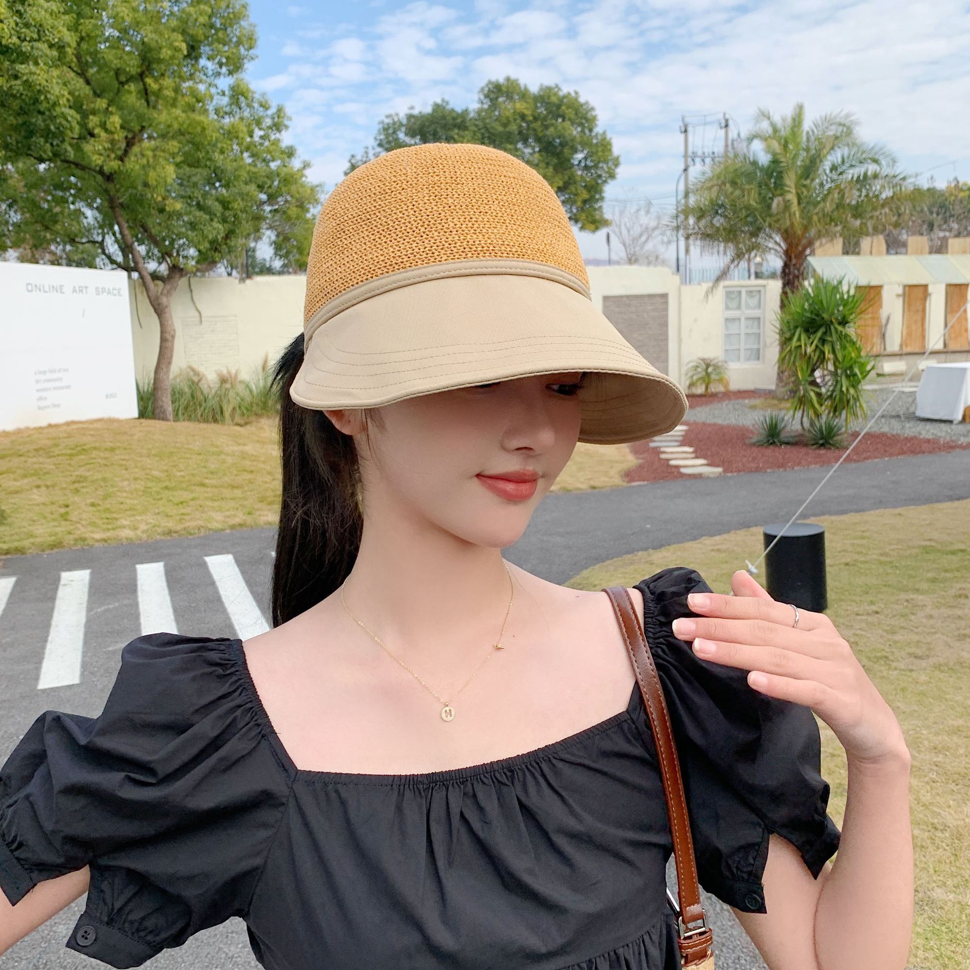 2023 New Hat Women's Spring and Summer Sun Protection Sun Hat Fashion Face-Looking Small Stitching Sun Hat Travel Summer Hat
