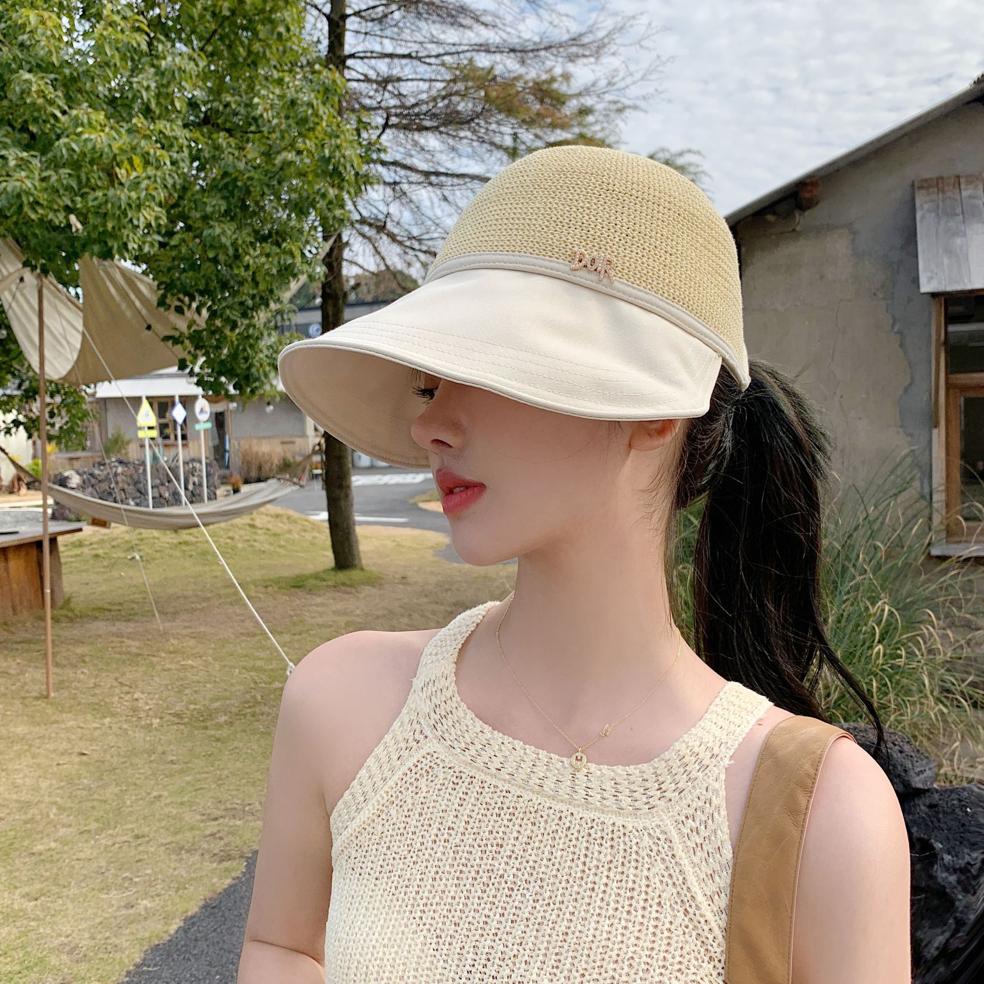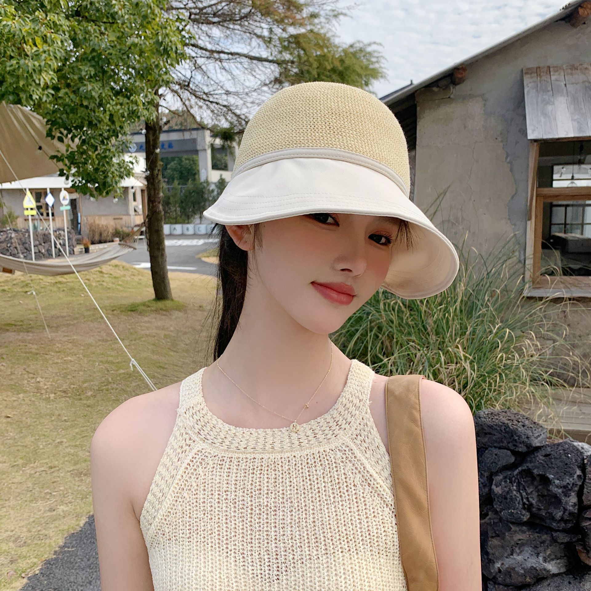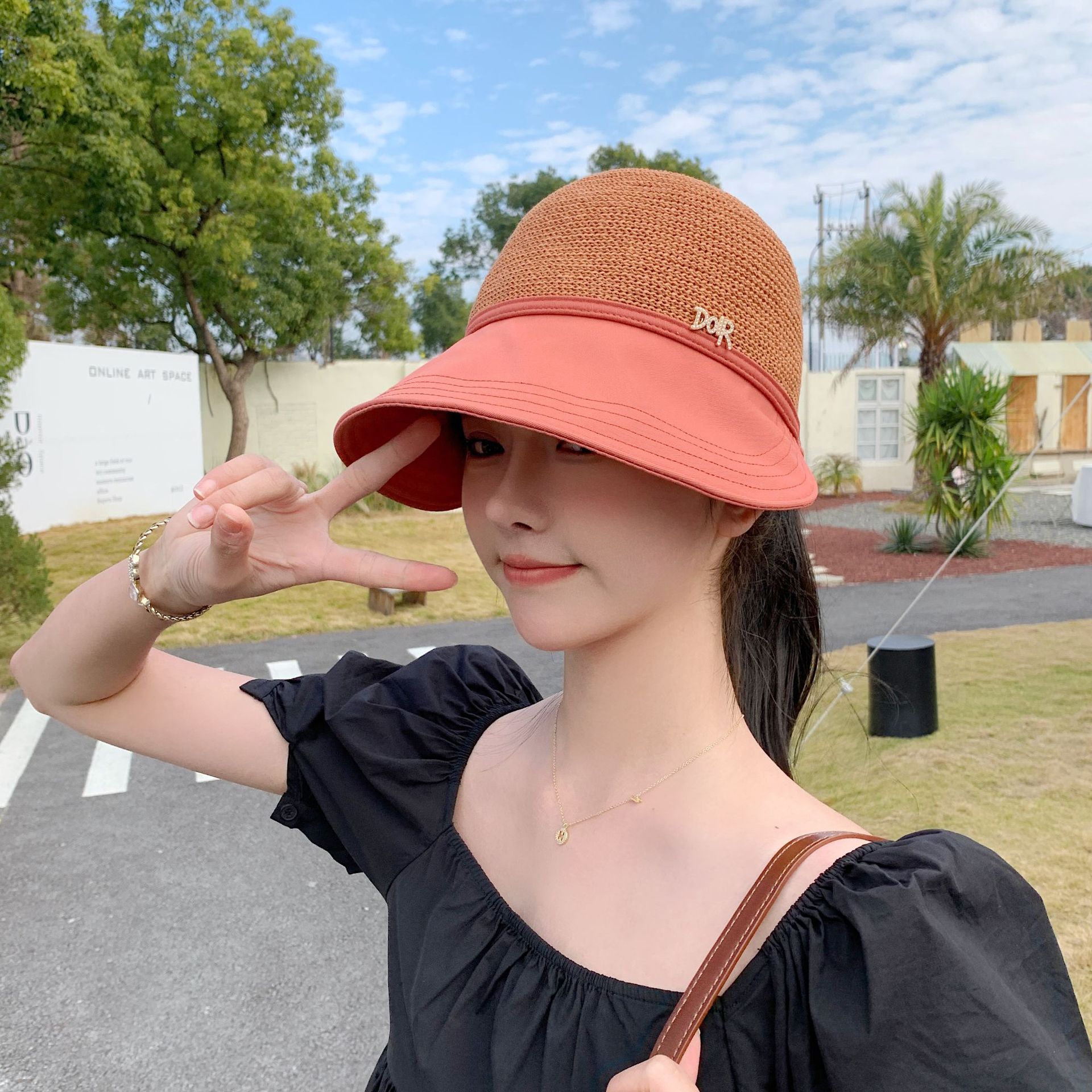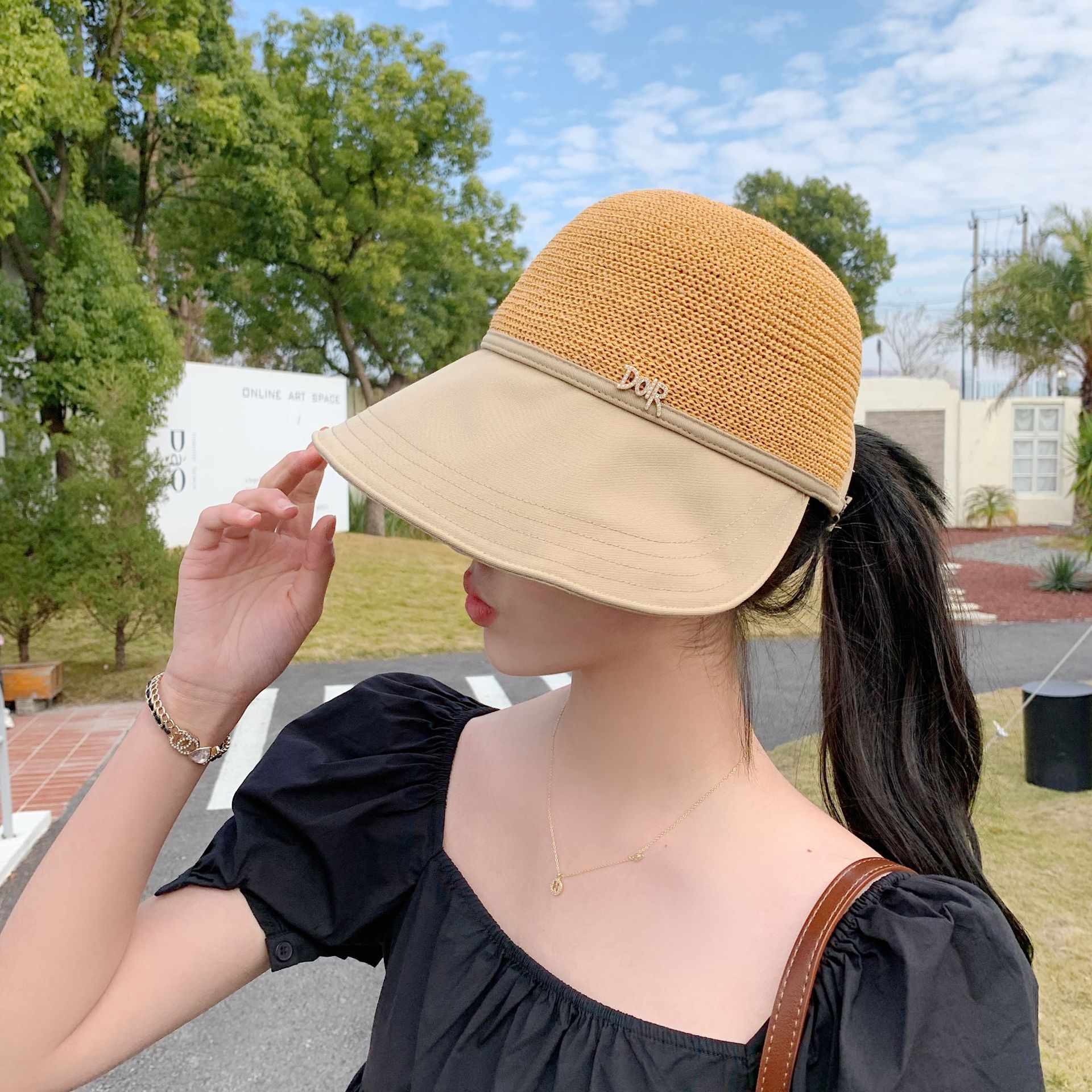 2023 New Hat Women's Spring and Summer Sun Protection Sun Hat Fashion Face-Looking Small Stitching Sun Hat Travel Summer Hat
