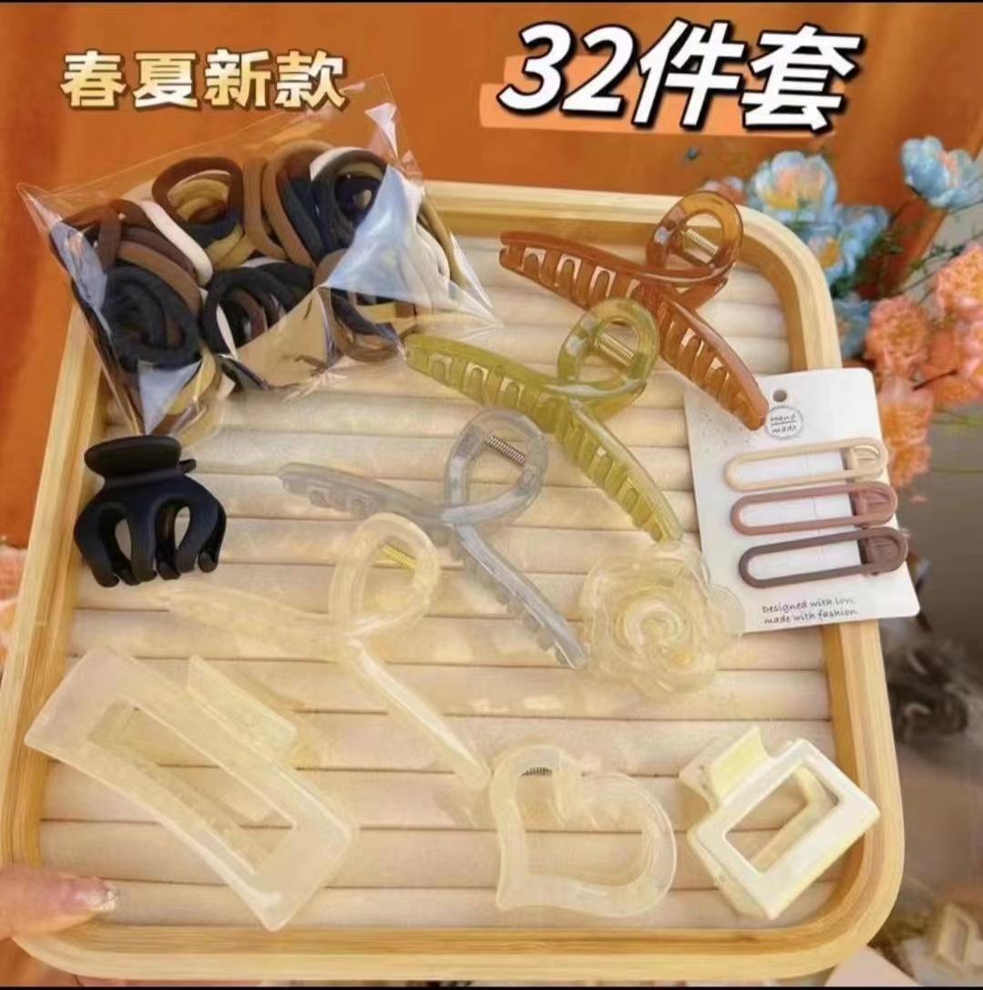 Live Popular Grip Package 32-Piece Set Value Grip Large Cross Clip Square Clip Hair Accessories Barrettes Shark Clip