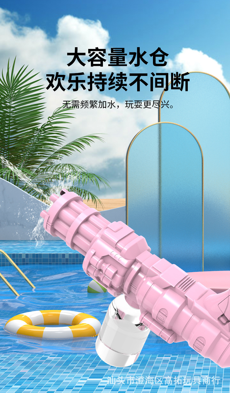 New Gatling Electric Water Gun Toy Cross-Border Foreign Trade Hot Sale Popular Large Capacity High Pressure Continuous Hair Battle Water Playing