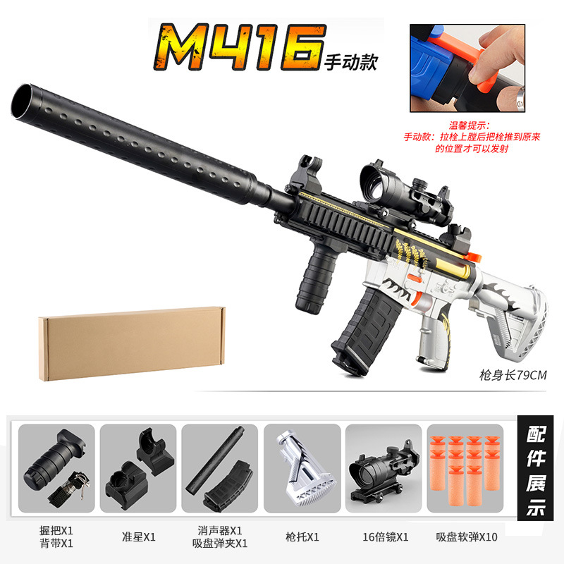 Children's Toy Gun M416 Soft Bullet Gun Manual Electric Continuous Bullet Accessories Stuffed Toy Stall Wholesale Delivery