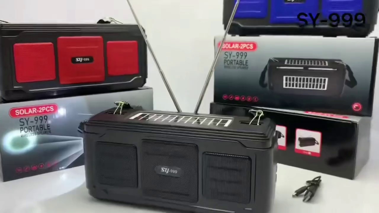New SY-999 Double Solar Panel Charging Plug-in Card Bluetooth Speaker Outdoor Subwoofer with Radio High Power