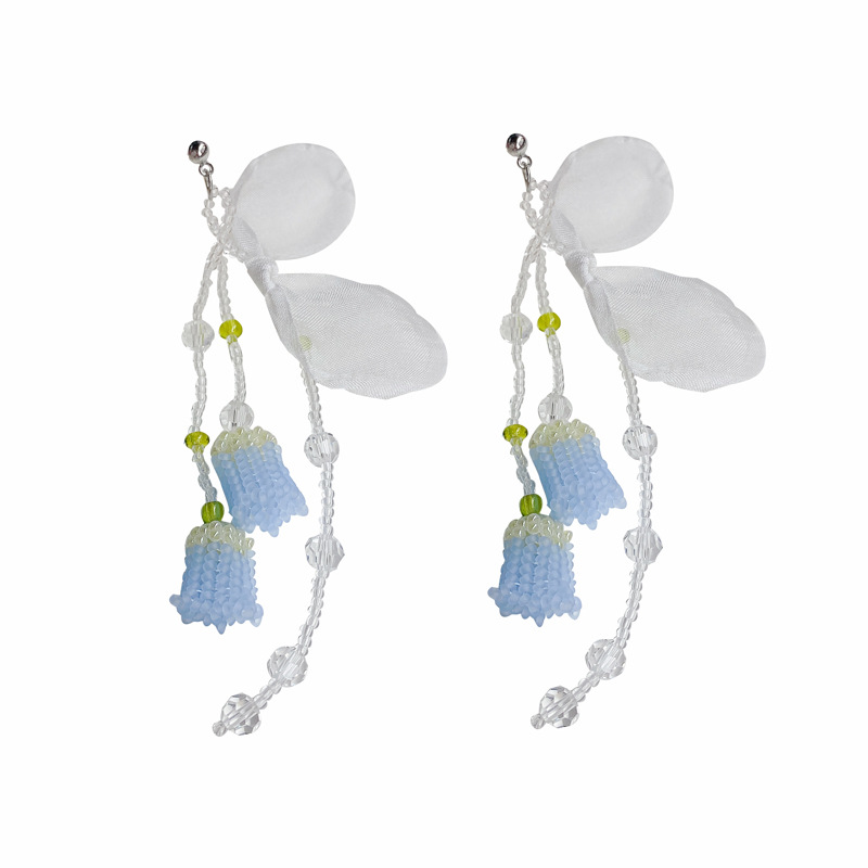beaded lanling flower tassel stud earrings
