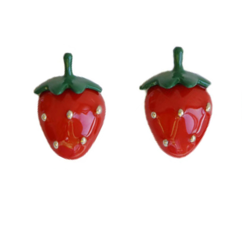 red strawberry stud earrings