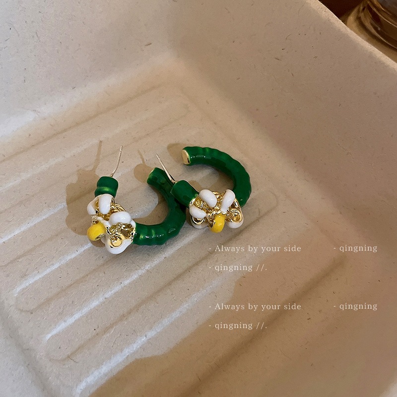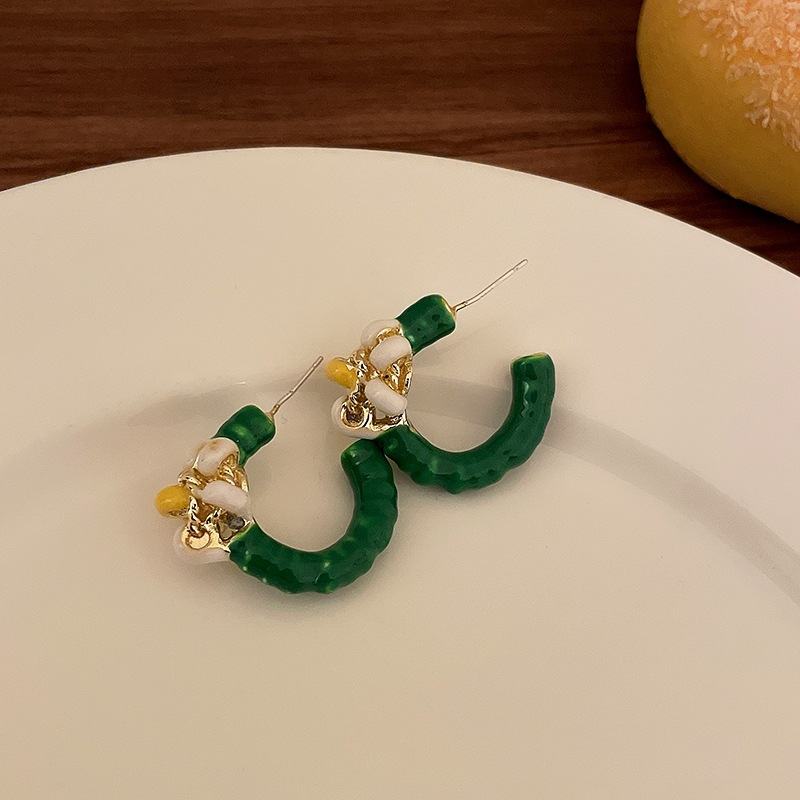 green c- shaped ear studs