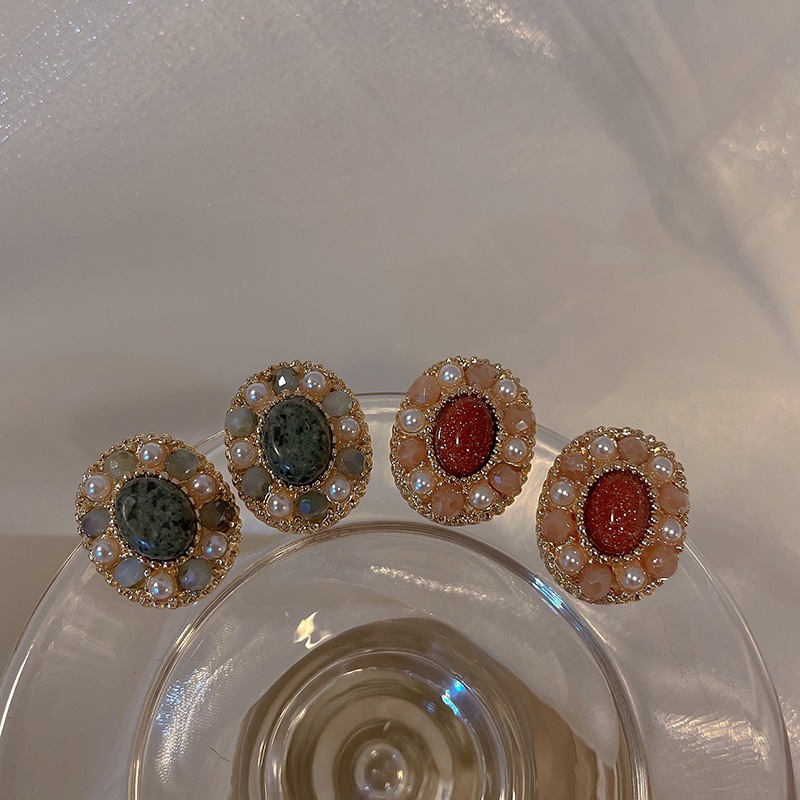 oval bead stud earrings retro green